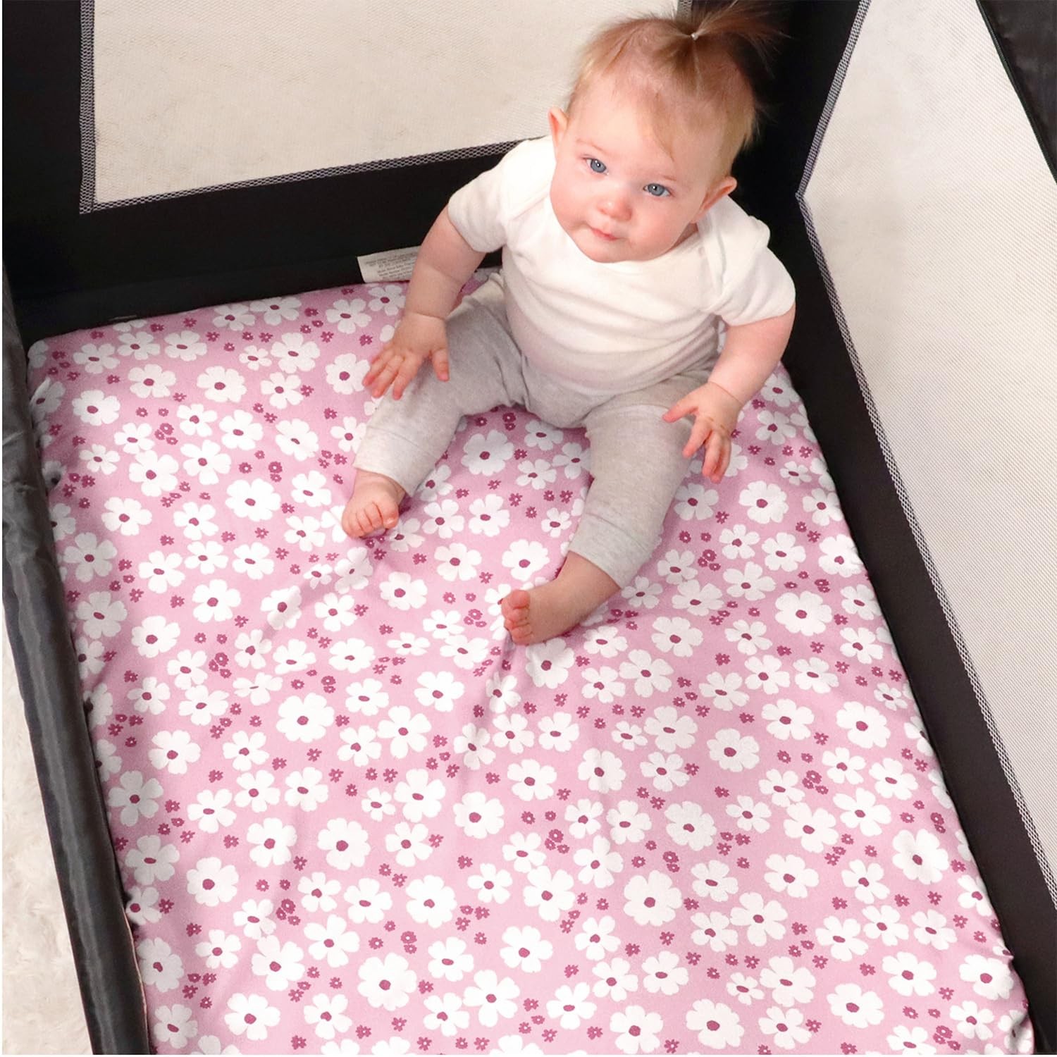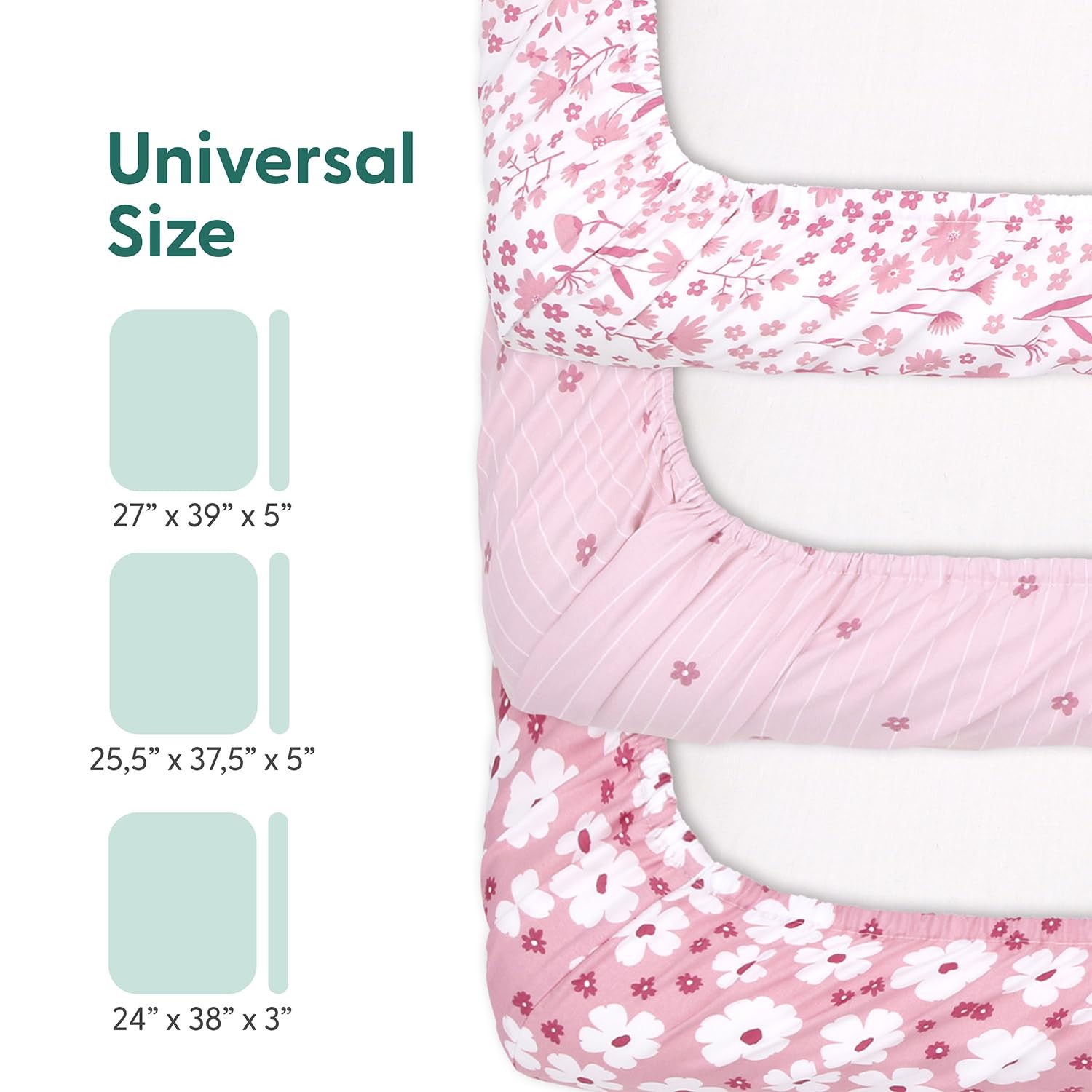 3-Pack Fitted Playard Sheets - Soft Breathable Baby Girl Mini Crib Sheets, ...