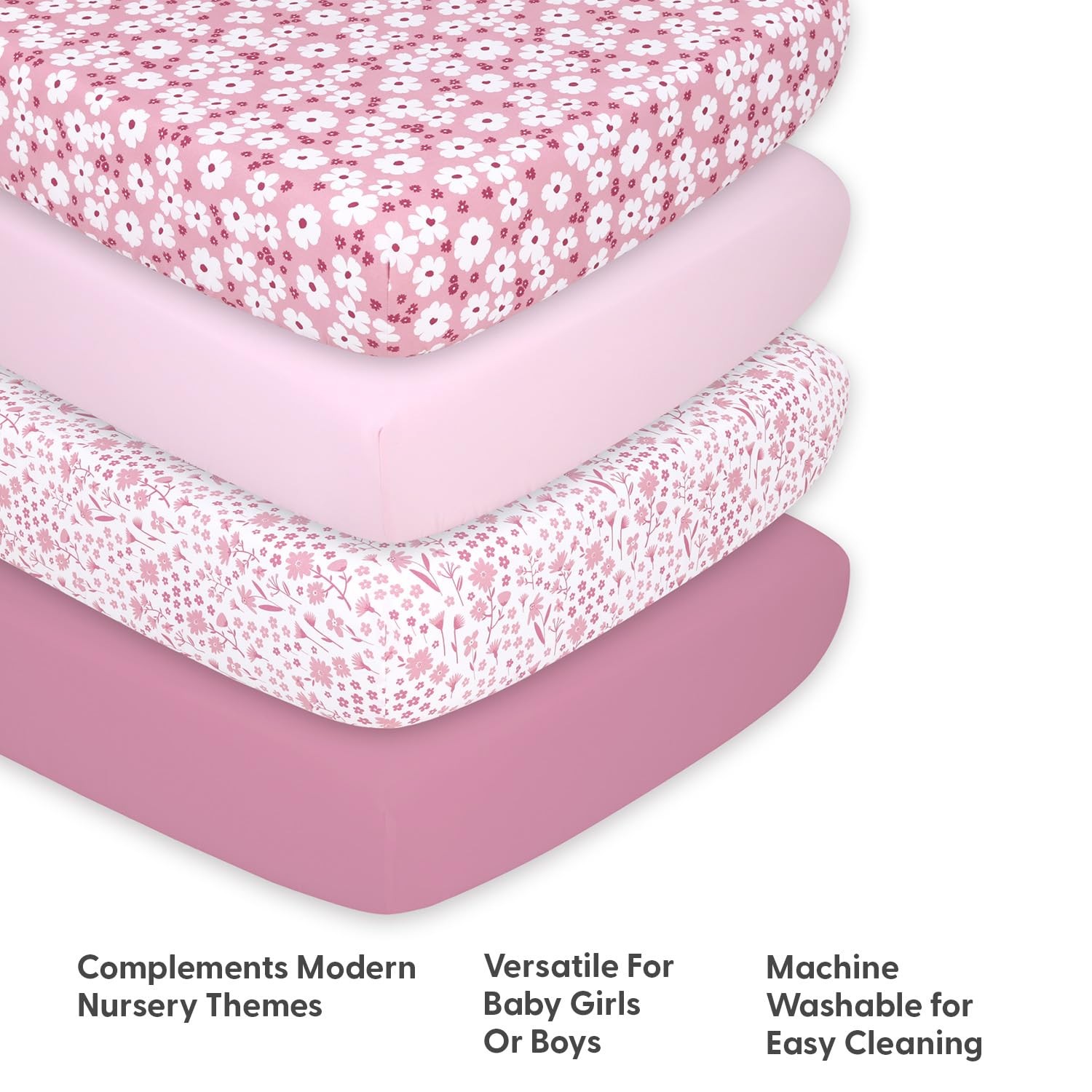 4-Pack Fitted Crib Sheet Set - Super Soft Breathable Baby Girl Crib Sheets,...