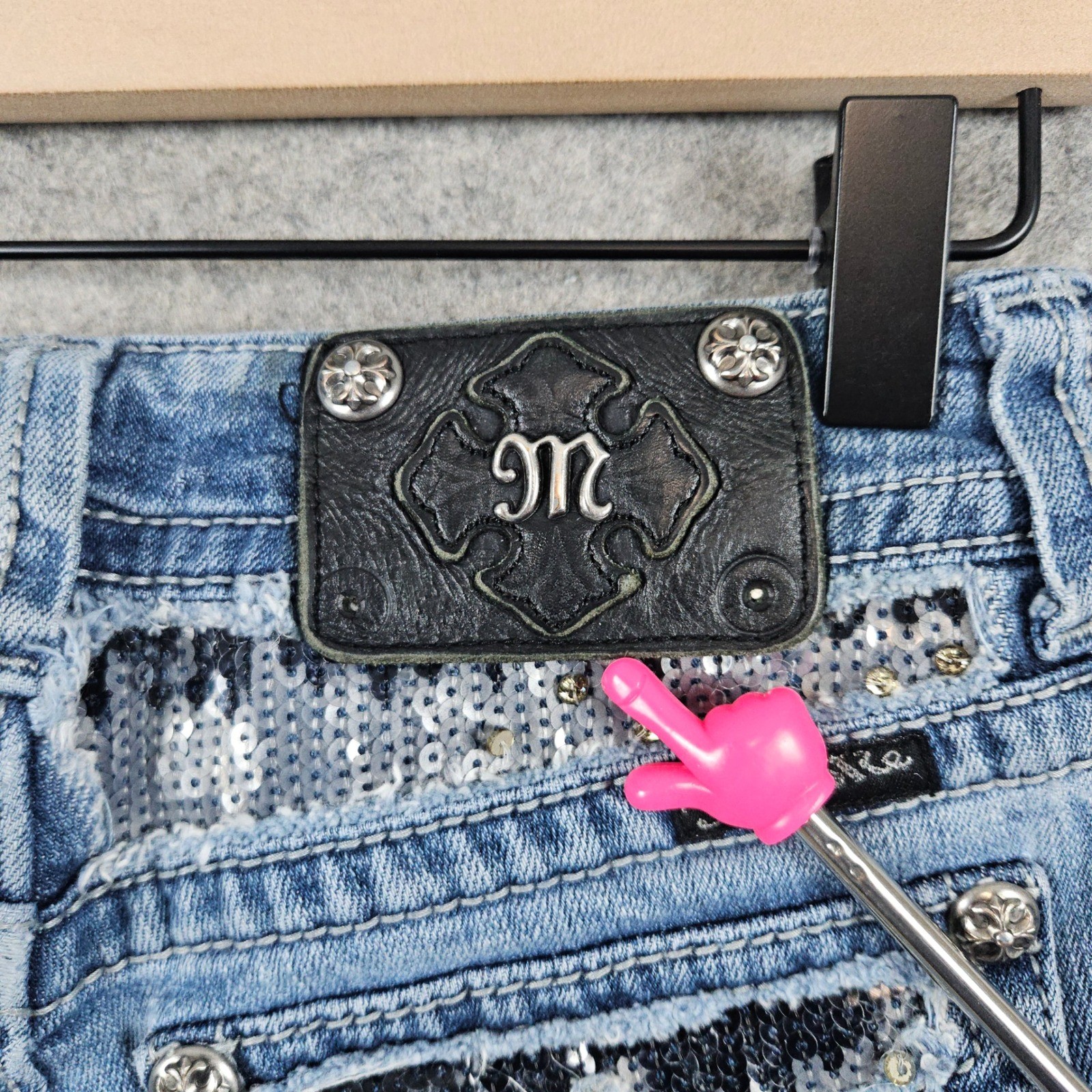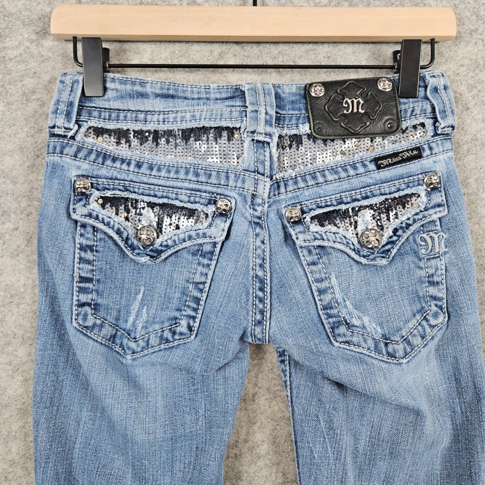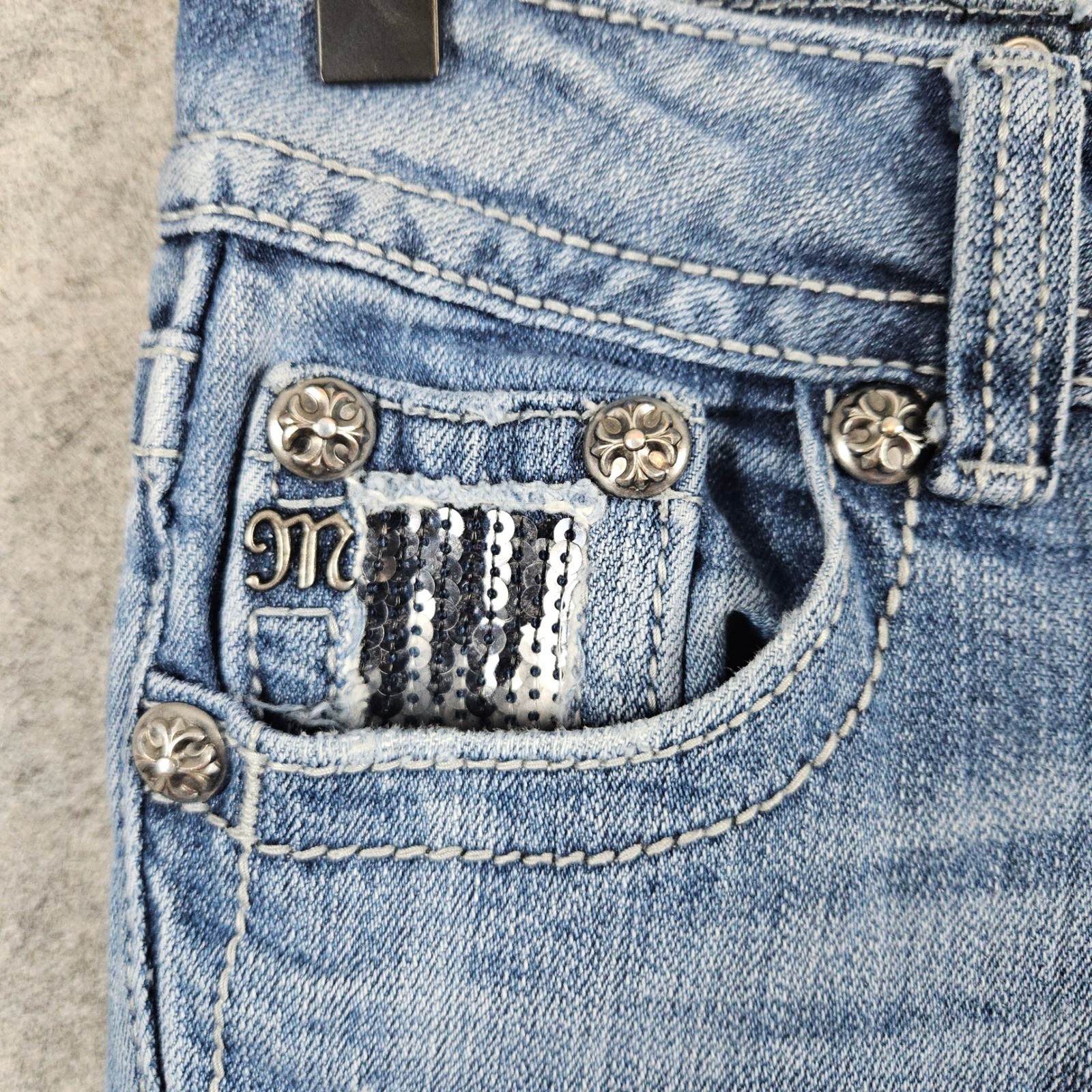 как выглядит Miss Me Jeans Womens Size 25 Boot Cut Embellished Sequins Denim JP5146B5 FLAWS фото