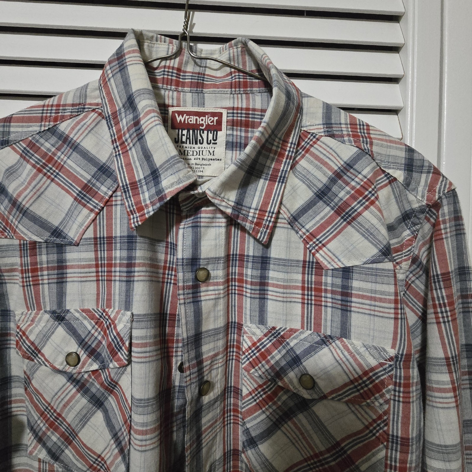как выглядит Vintage 90s Wrangler Mens Pearl Snap Shirt Size M Plaid Western Cowboy Soft фото