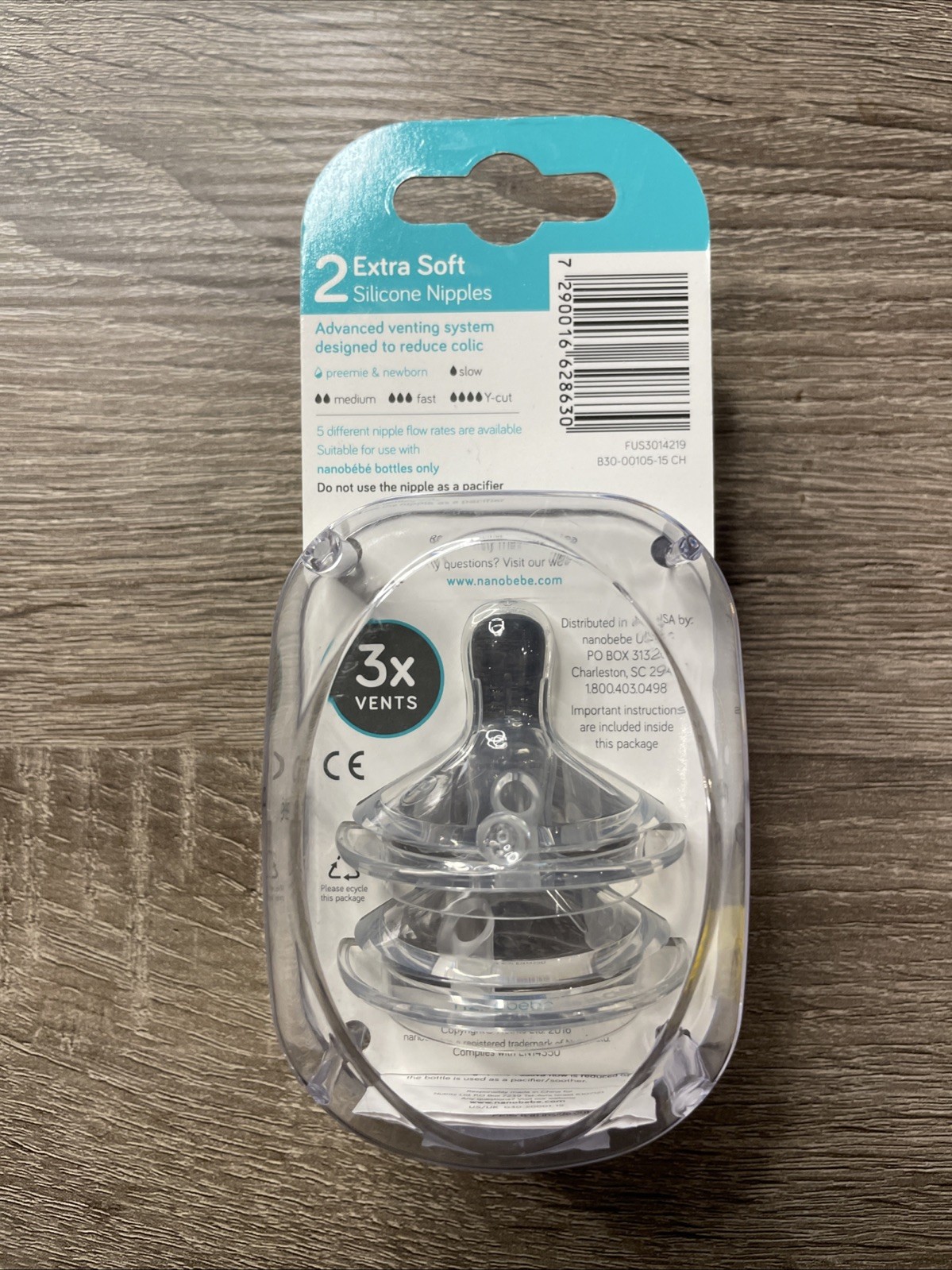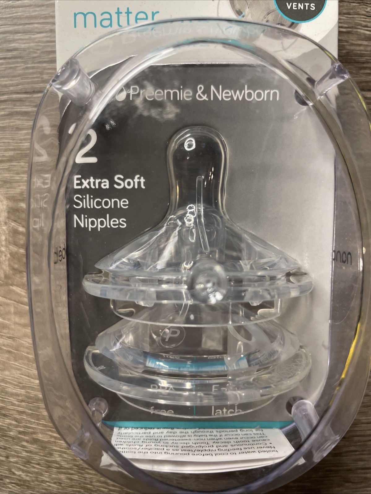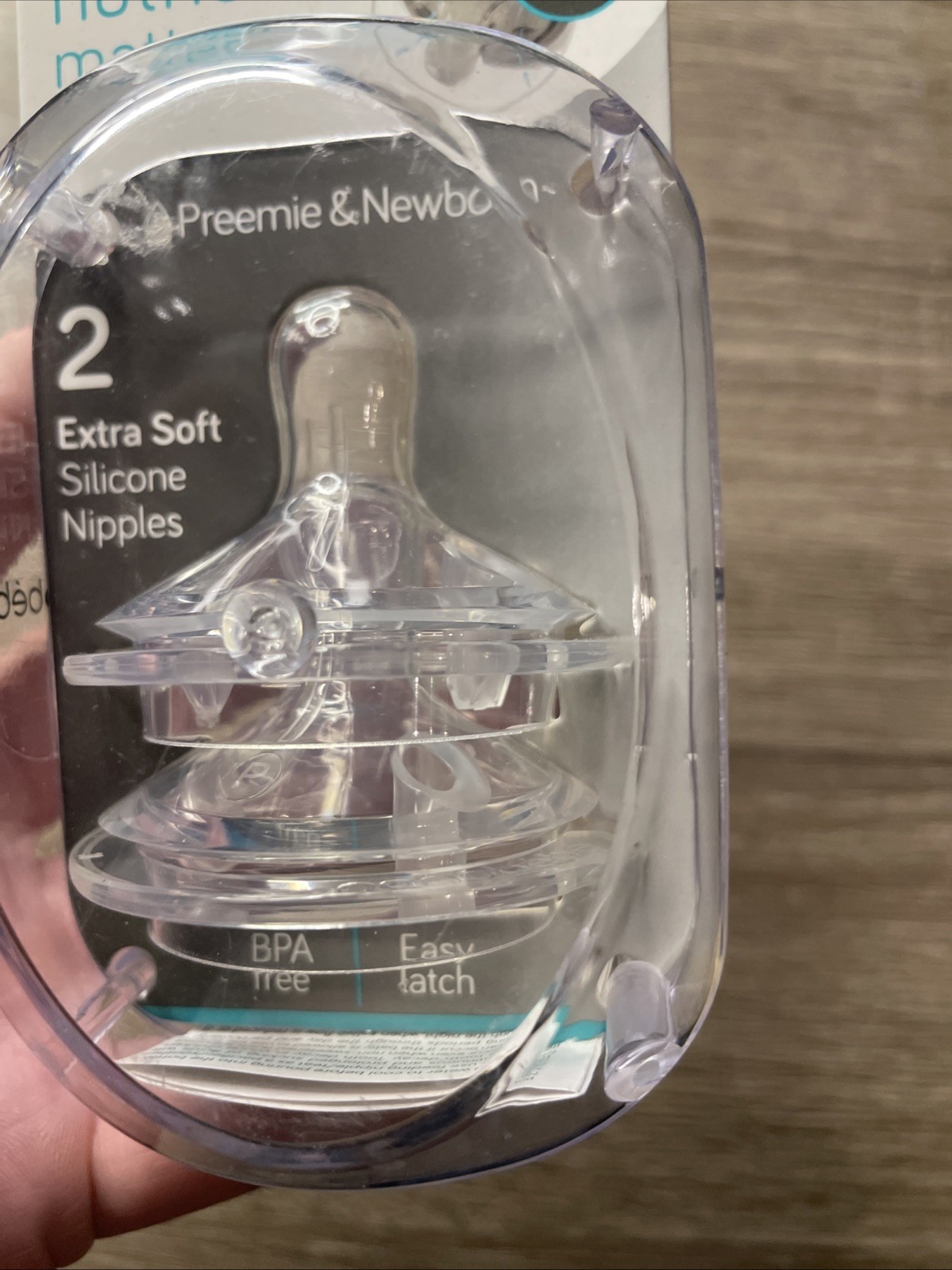 как выглядит 2-Pack PREEMIE Newborn Om NANOBEBE Extra Soft Clear Nipples SLOW Flow Sealed фото