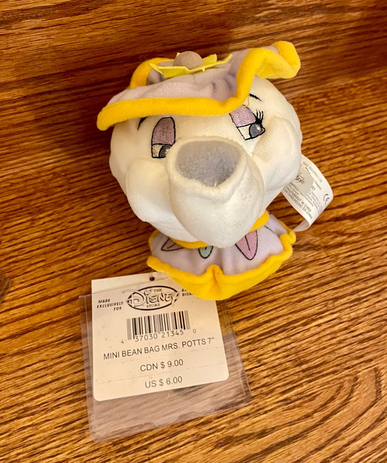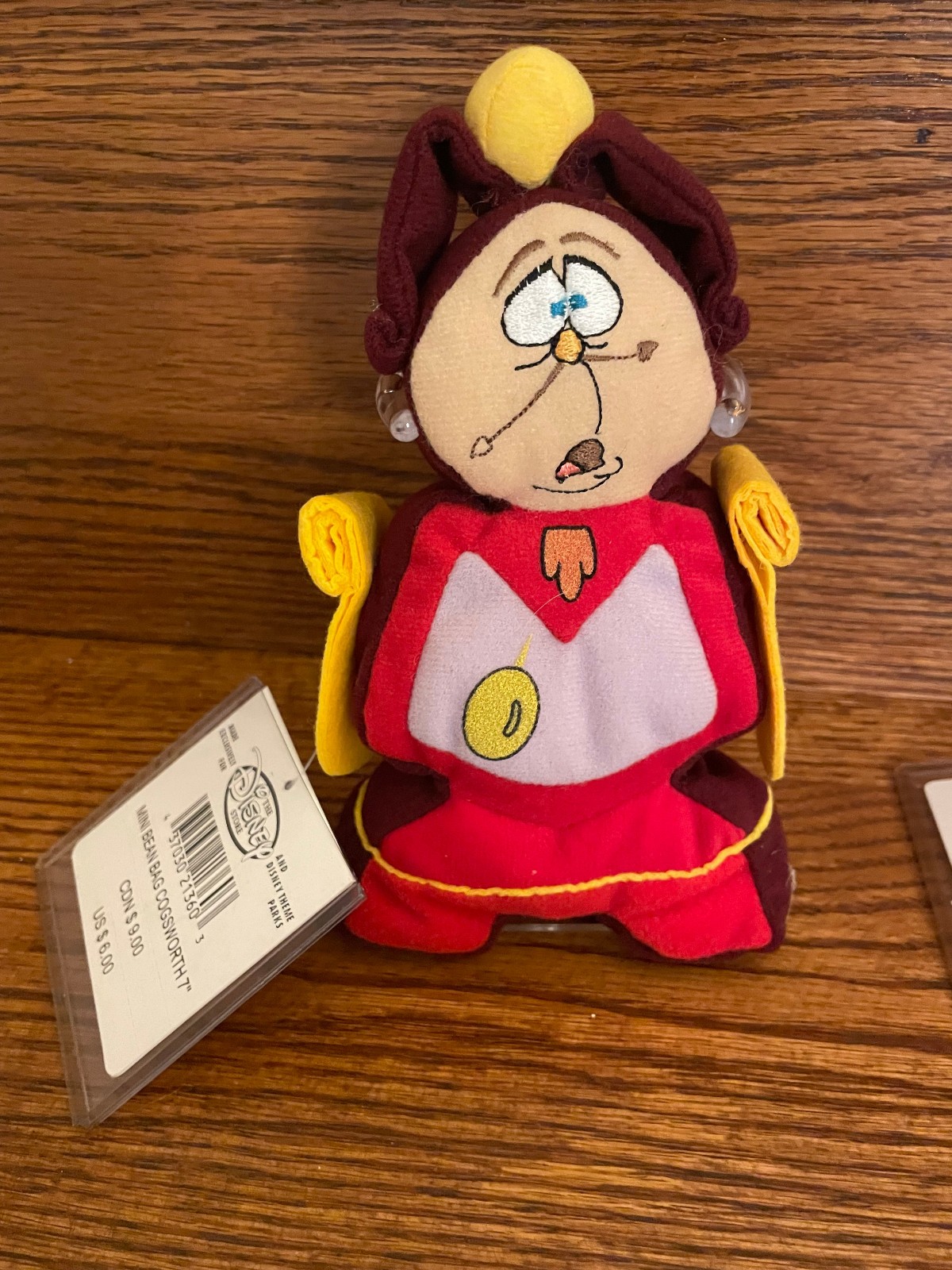 Disney Store Beauty The Beast Mini Bean Bag Plush, Lot of 6 BONUS STAND