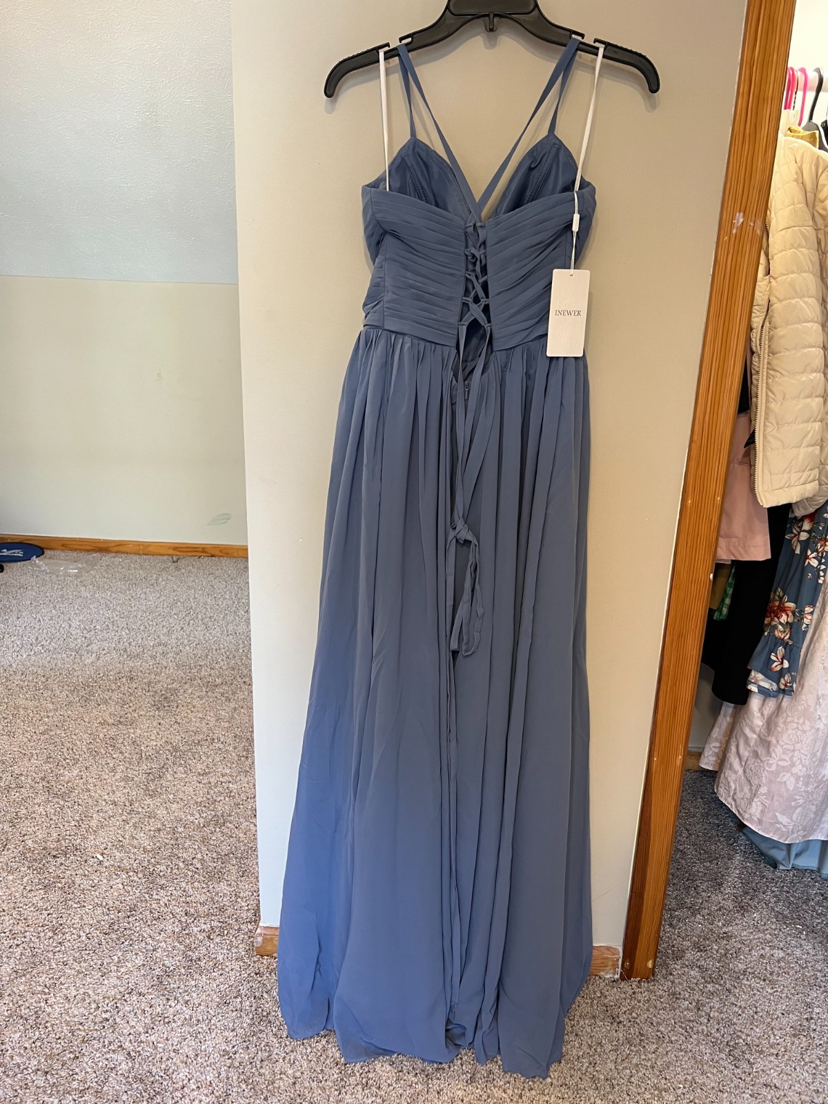 как выглядит New Pleated Chiffon Dress ALine VNeck Formal Occassion Blue Corset Bridesmaid фото