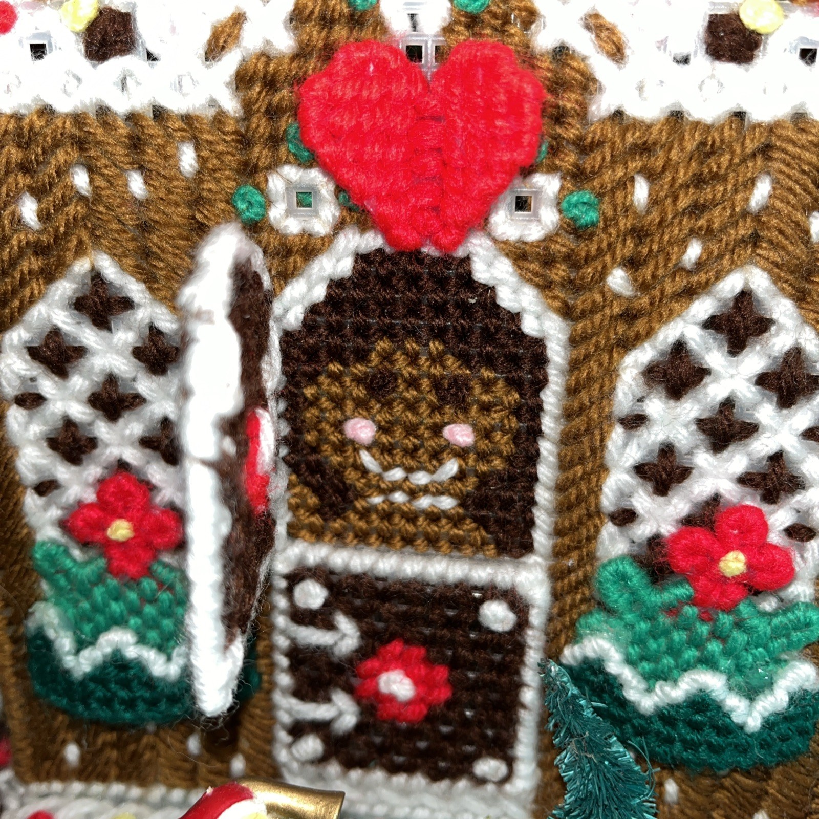 Gingerbread House Needlepoint Plastic Canvas Handmade Heart Christmas Decor 11
