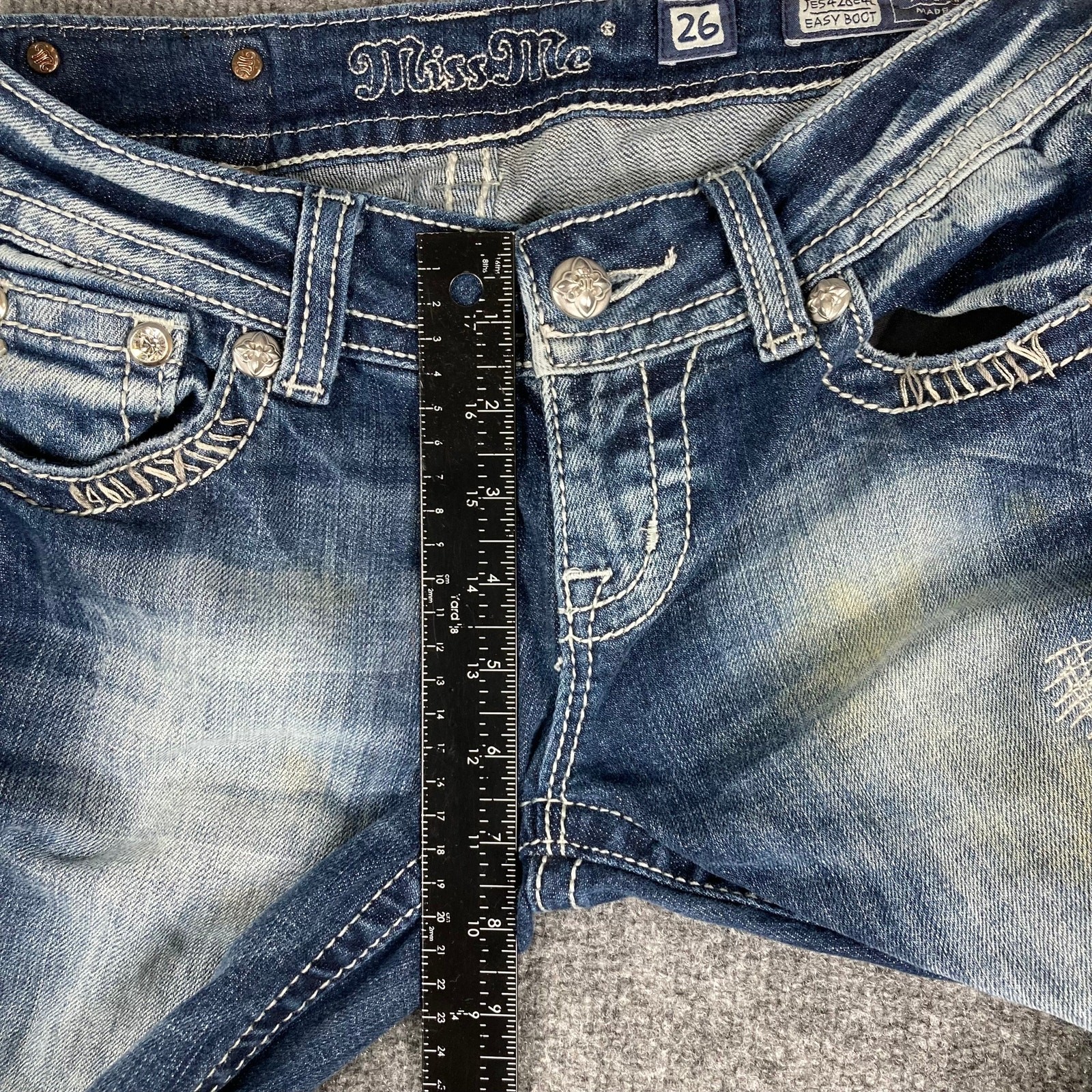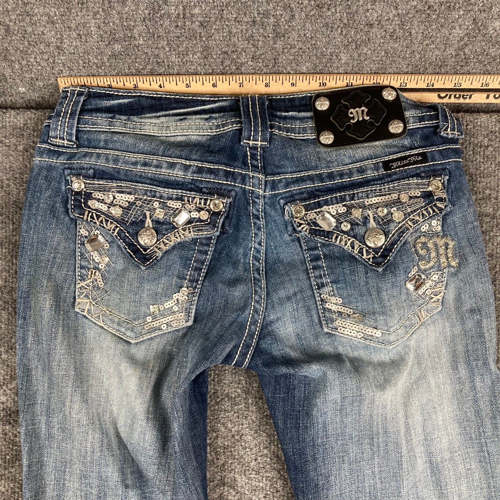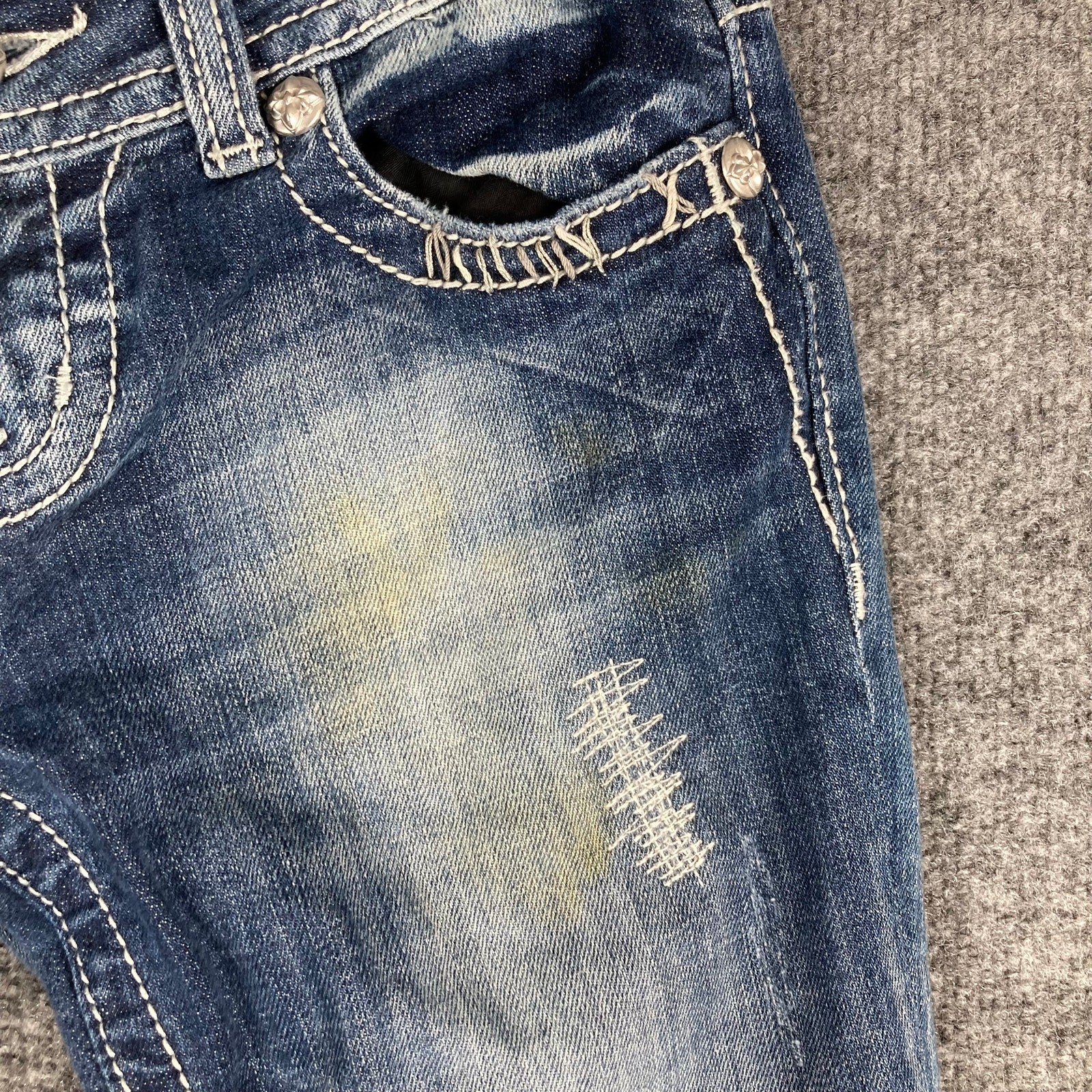 как выглядит Miss Me Jeans Womens Size 26 Medium Wash Easy Bootcut Distressed Embellished фото