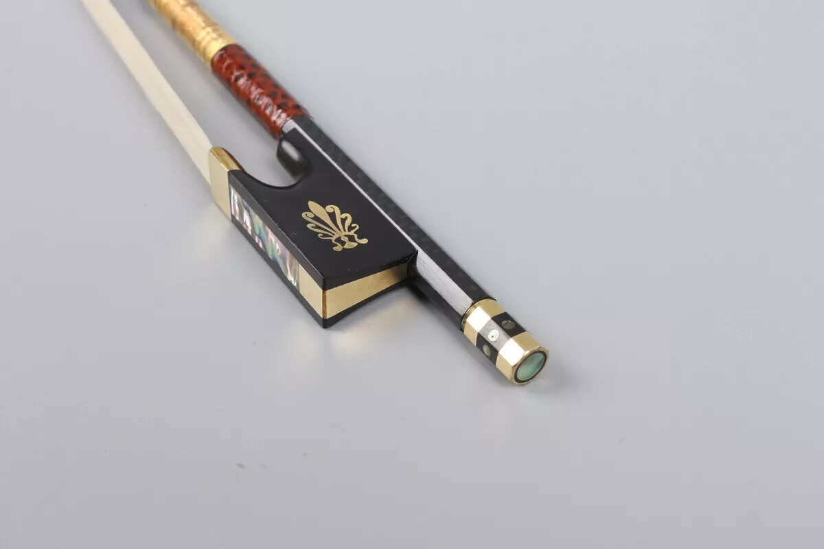 4/4 Violin Bow Golden Braided Carbon FIber Ebony Frog Bows Hair Peacock Blossom