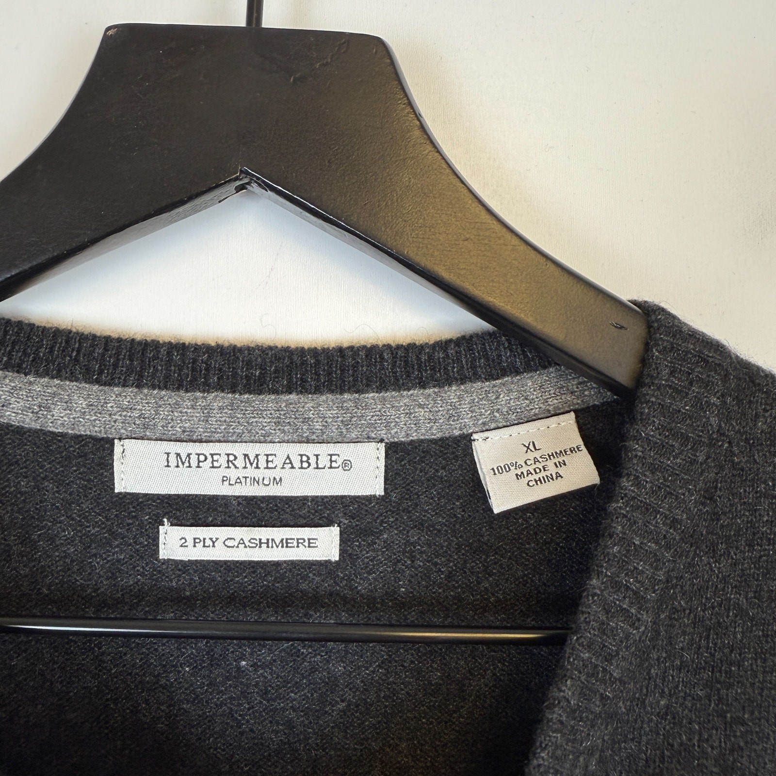 Impermeable Mens 100 Cashmere Crew Sweater Black Gray - XL