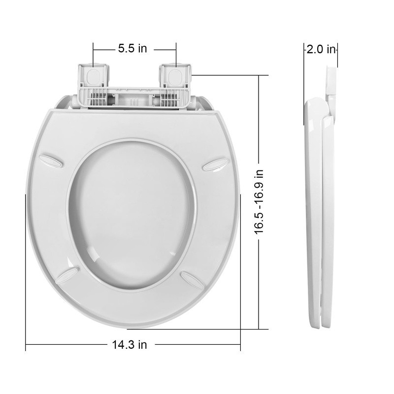 как выглядит 17" Plastic Toilet Seat Soft Close Quick Release Adjustable Hinge W/ Pads White фото