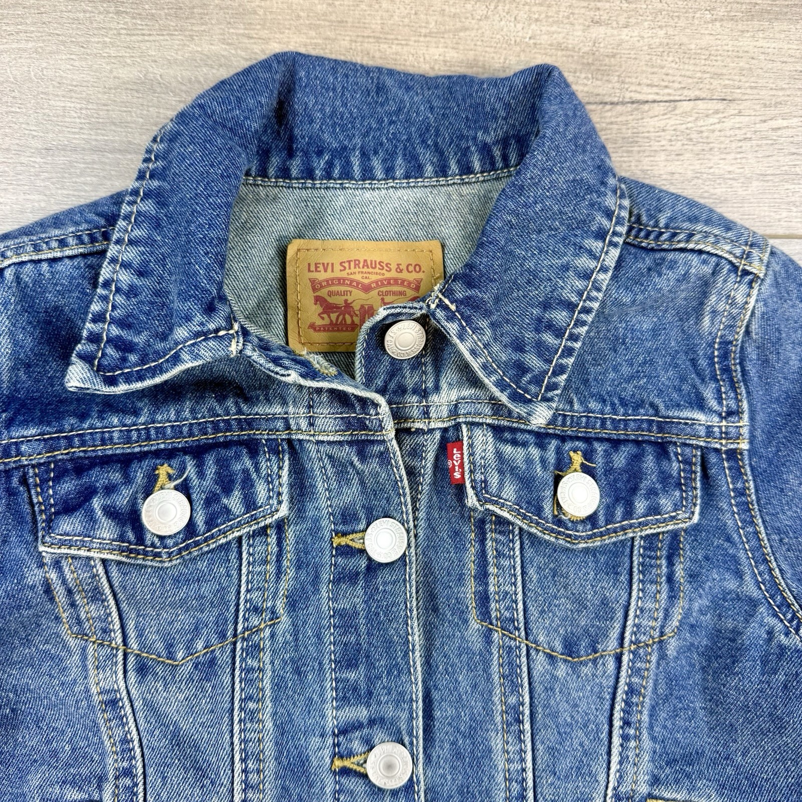 Levi s Classic Trucker Denim Rivet Button Jean Jacket Girl s Small Blue Med Wash