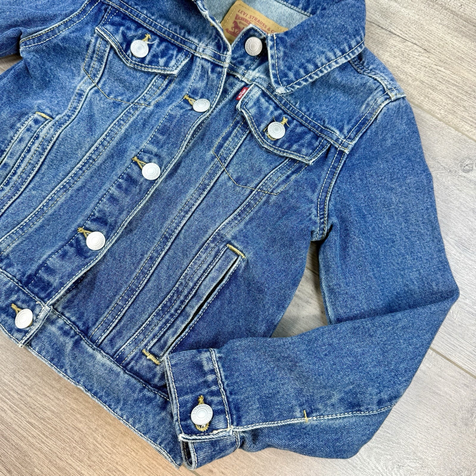 как выглядит Levi s Classic Trucker Denim Rivet Button Jean Jacket Girl s Small Blue Med Wash фото