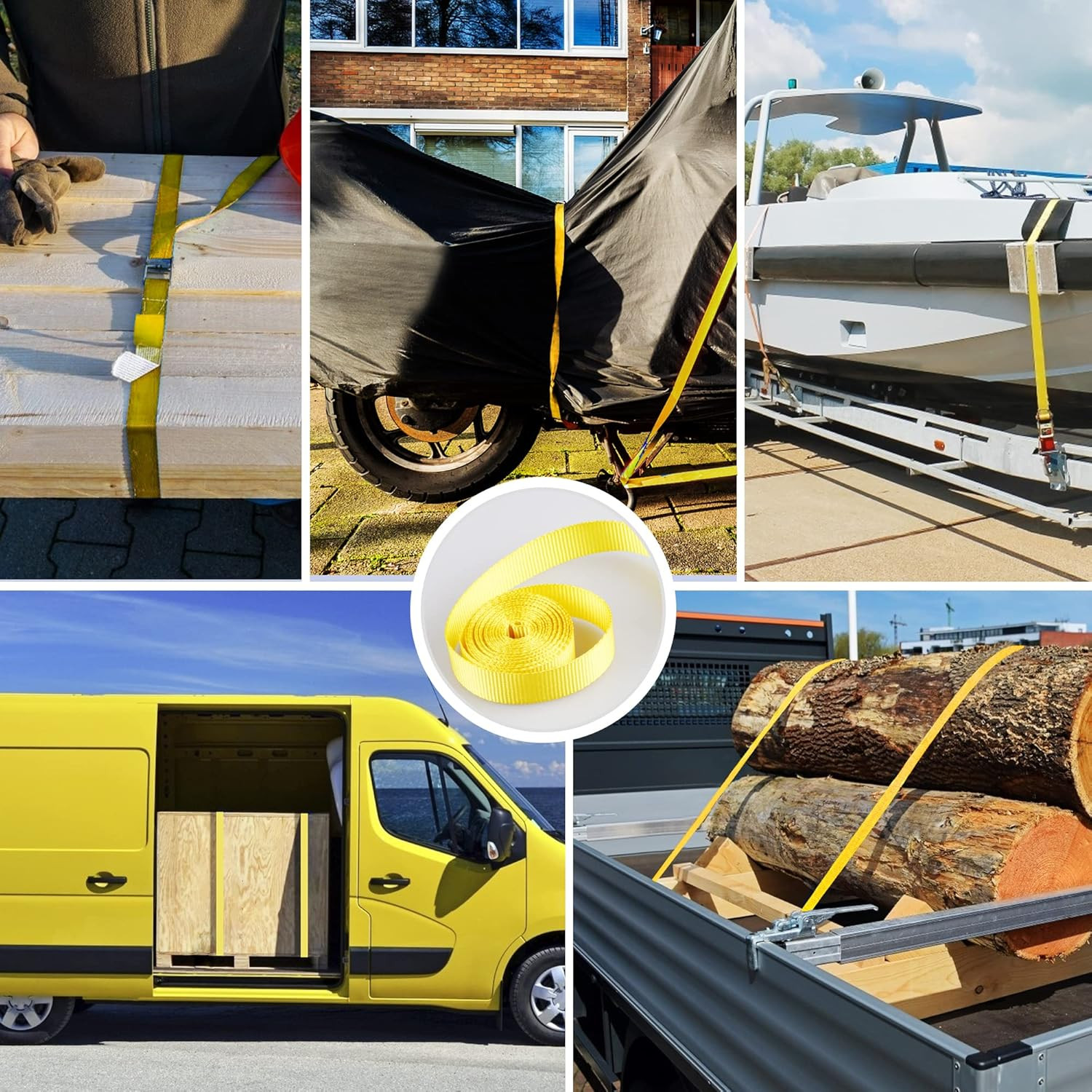 Lashing Tie down Strap 8PK 1 X 12FT Cam Buckle Tie down up to 600Lbs, Yellow Co
