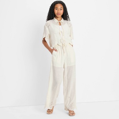Women's High-Rise Wide Leg Embellished Eyelet Pull-On Pants - Future