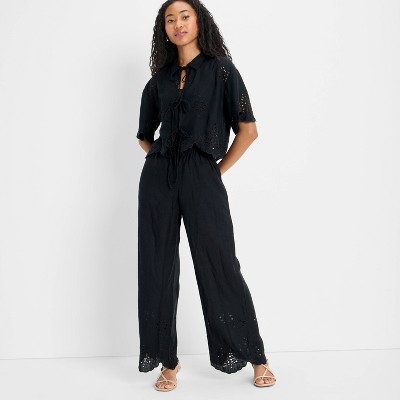 Women's High-Rise Wide Leg Embellished Eyelet Pull-On Pants - Future