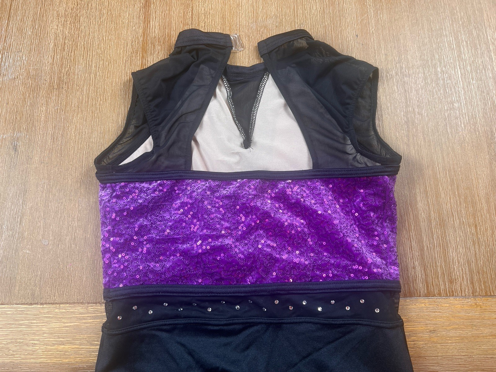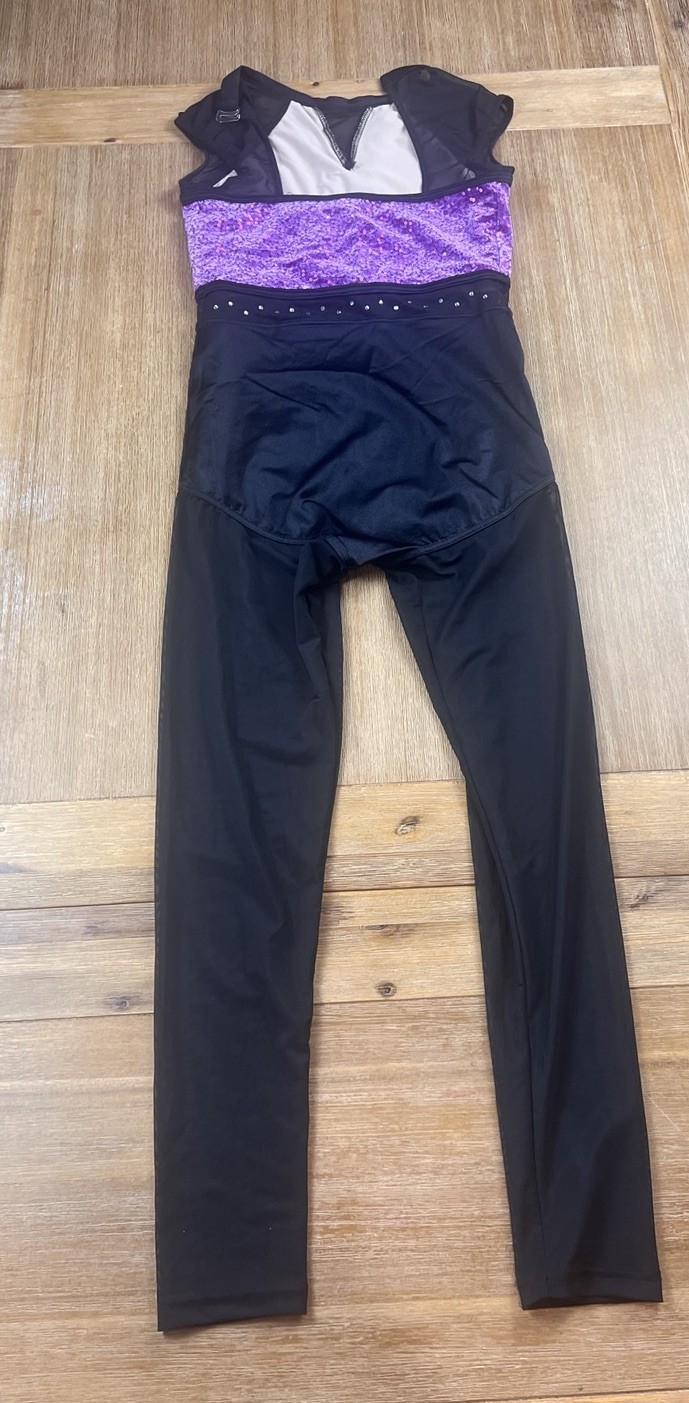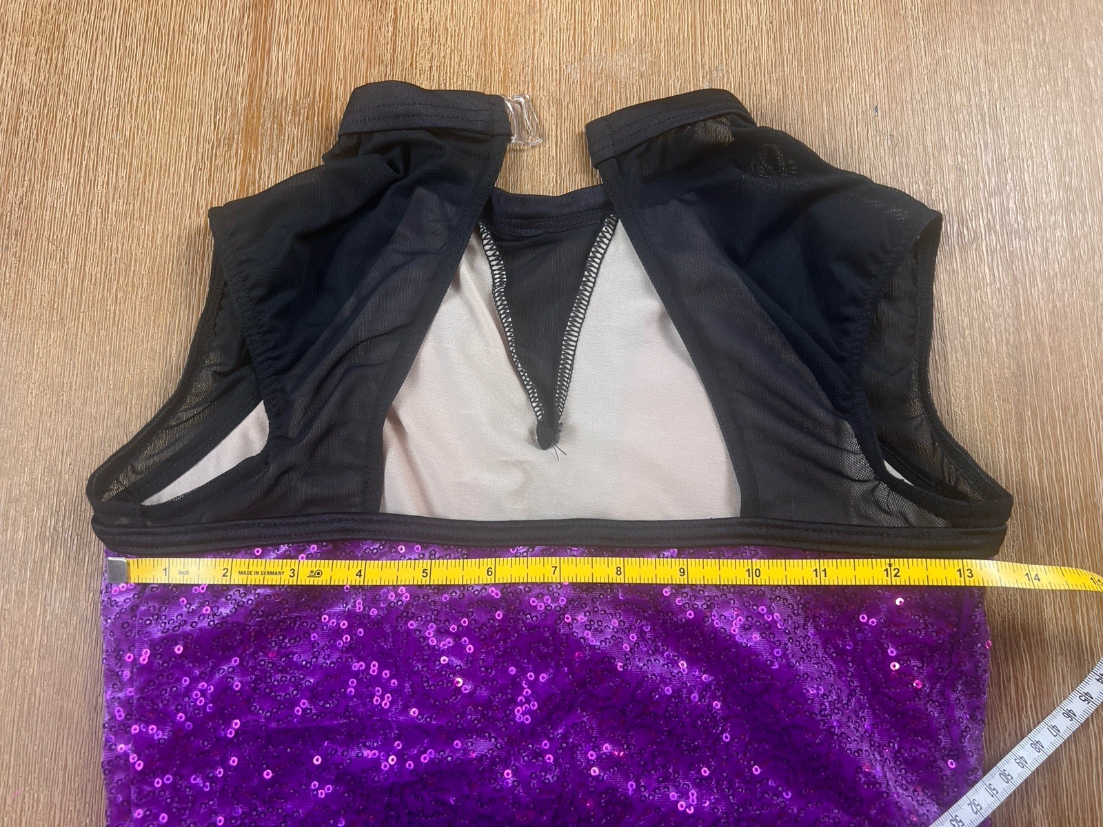Weissman Adult Medium Dance Unitard Purple Sequin Mesh Legs Performance Costume
