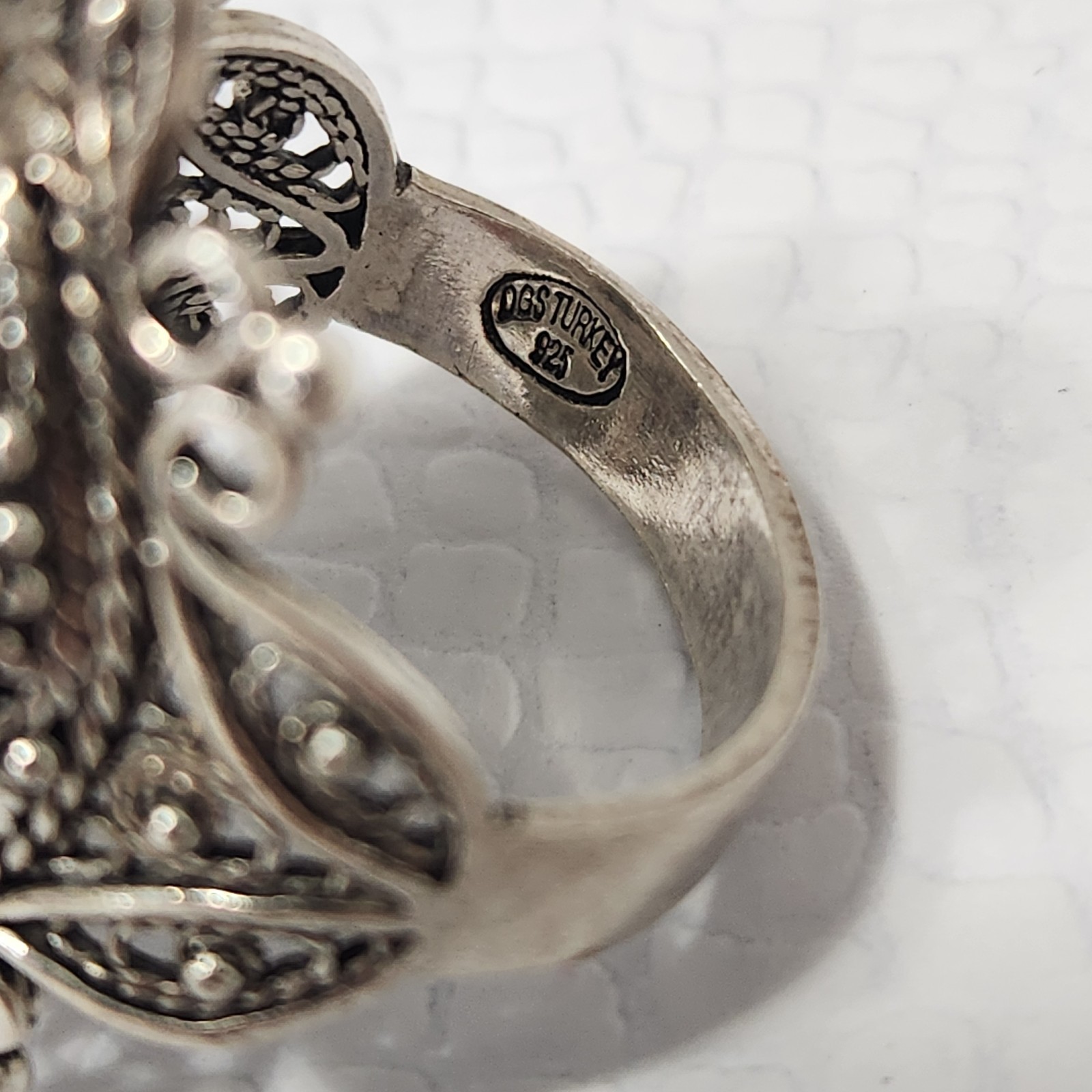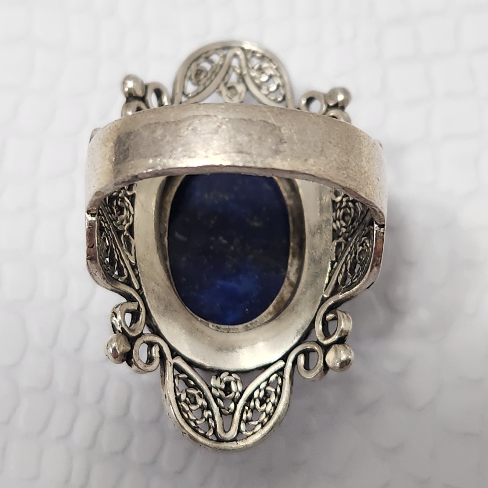 Bold Vtg Turkish Sterling Silver Lapis Lazuli Ring 925 Size 10 Statement Boho