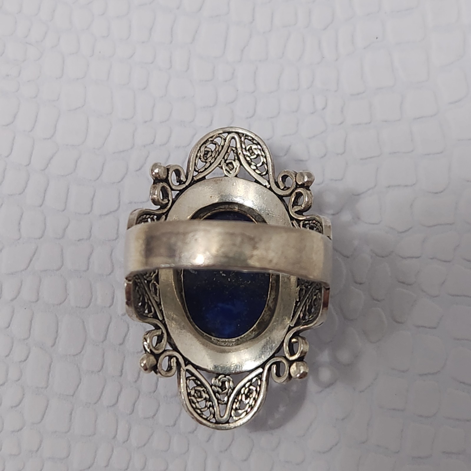 как выглядит Bold Vtg Turkish Sterling Silver Lapis Lazuli Ring 925 Size 10 Statement Boho фото