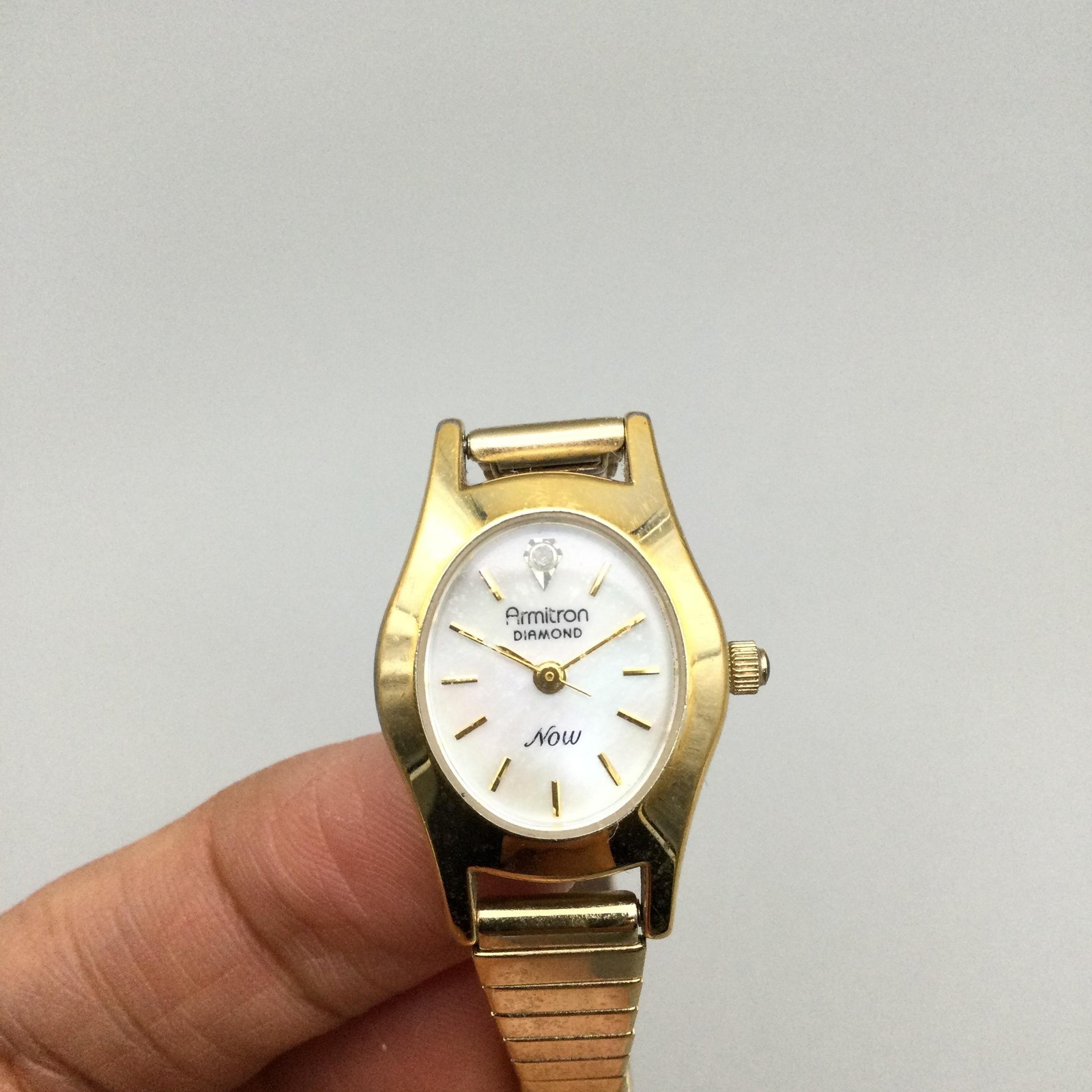 как выглядит Armitron Diamond Now Womens Watch 19mm Gold Tone Dress Stretch New Battery фото