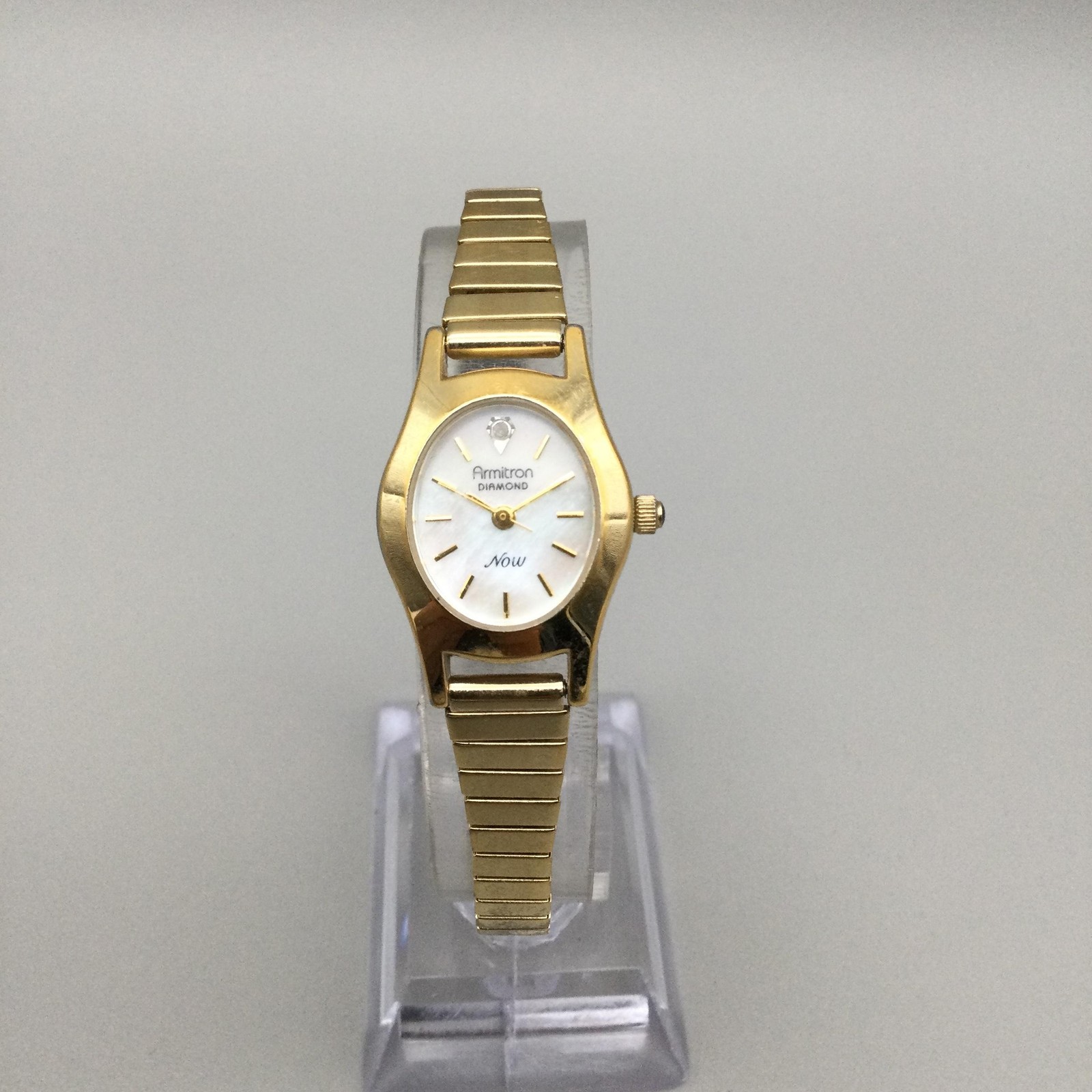 Armitron Diamond Now Womens Watch 19mm Gold Tone Dress Stretch New Battery