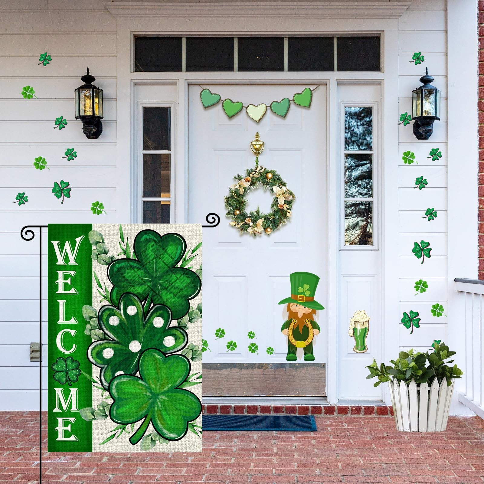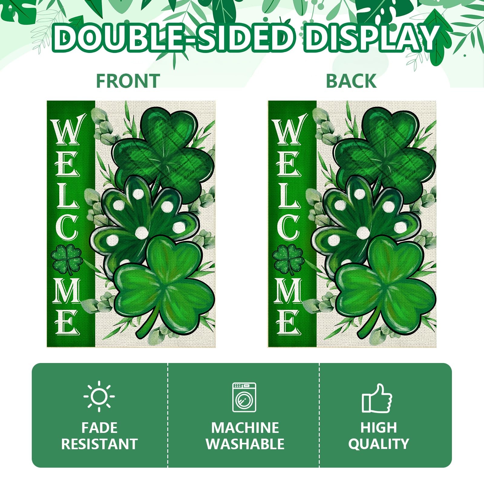 St Patricks Day Shamrocks Garden Flag 12x18 Double-Sided Welcome Green Clovers
