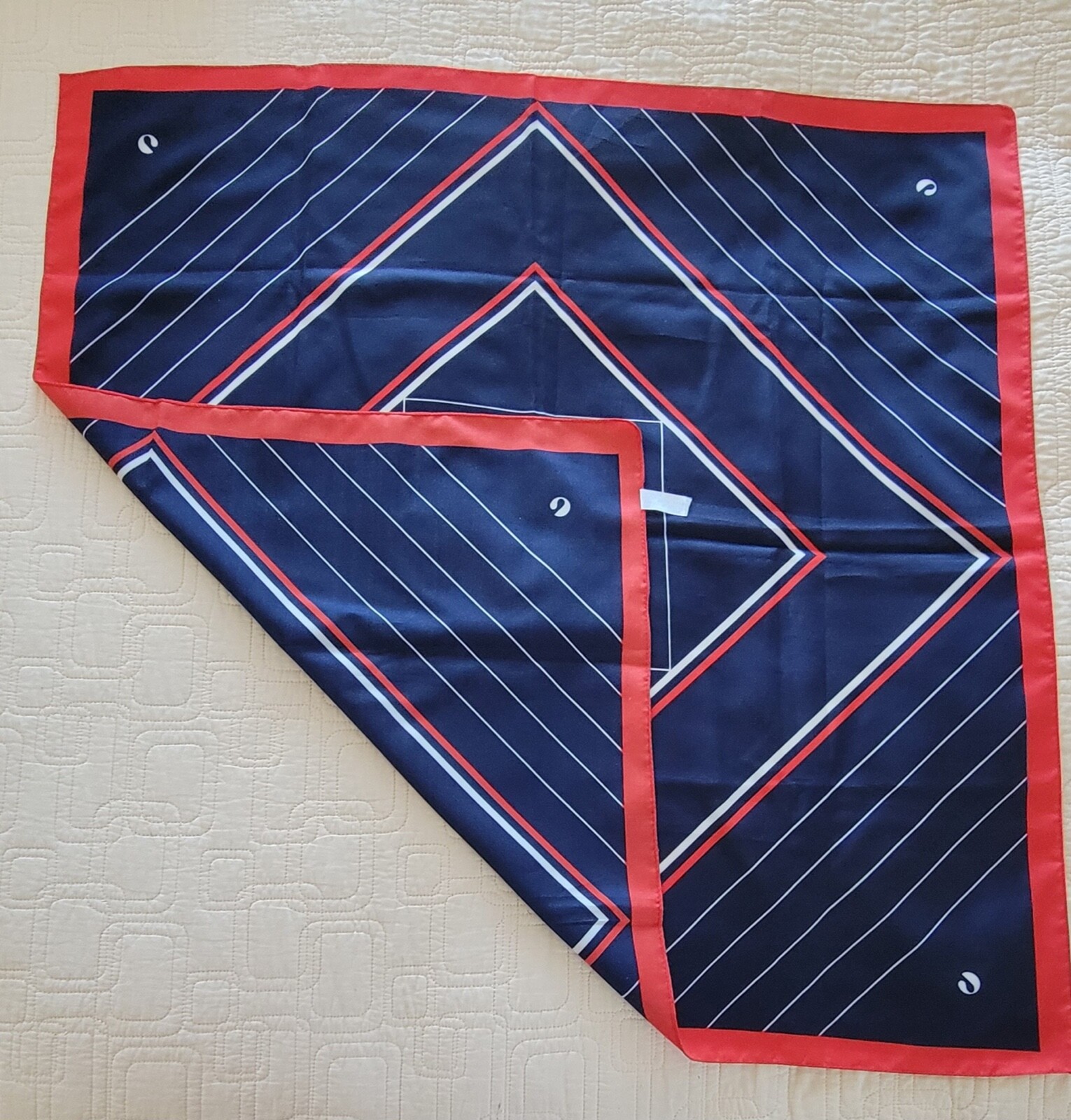 как выглядит Vintage 1960-1980s Blue Red White Geometric Scarf Made in Italy 27 x 26 inch фото