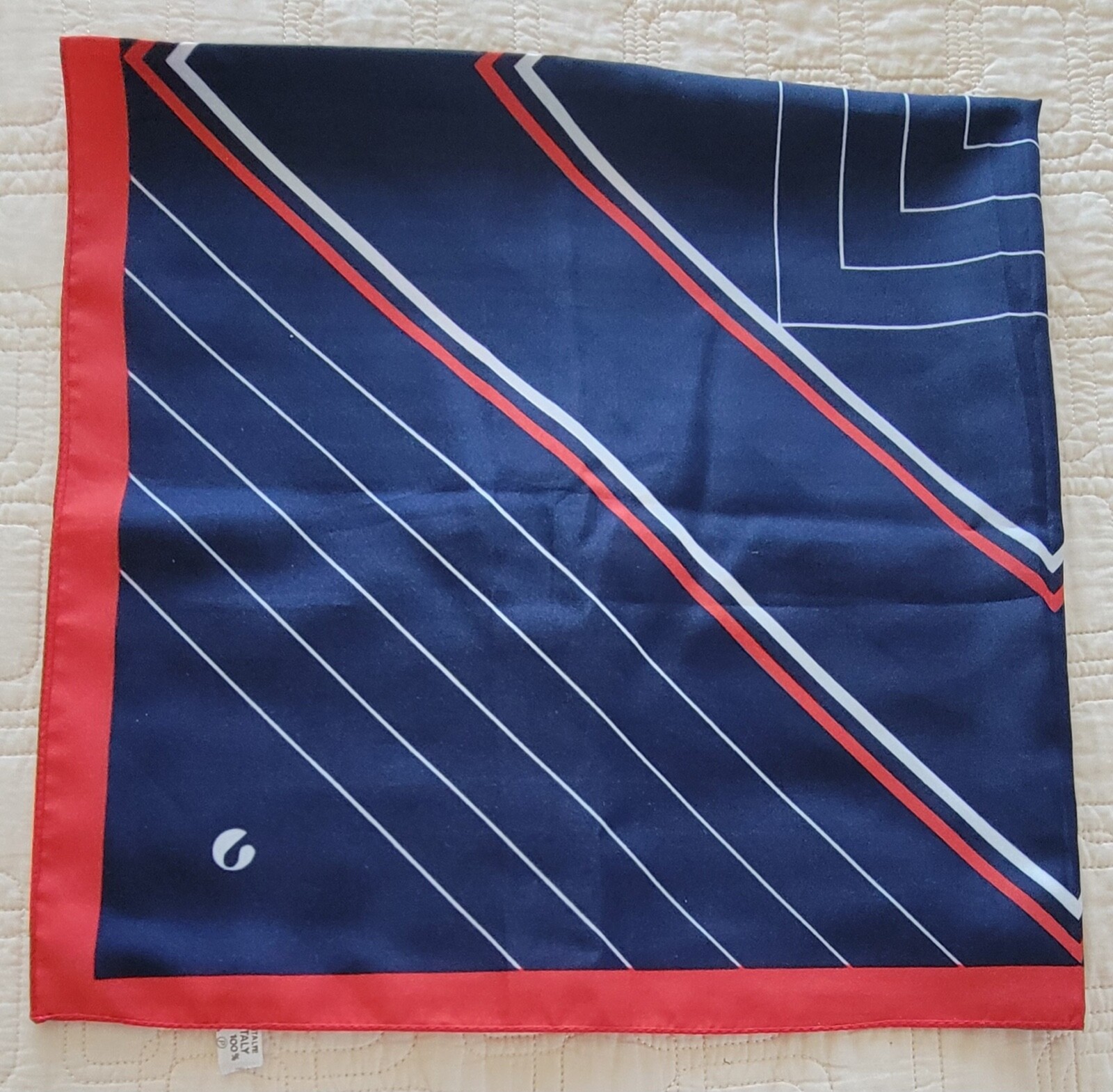 Vintage 1960-1980s Blue Red White Geometric Scarf Made in Italy 27 x 26 inch