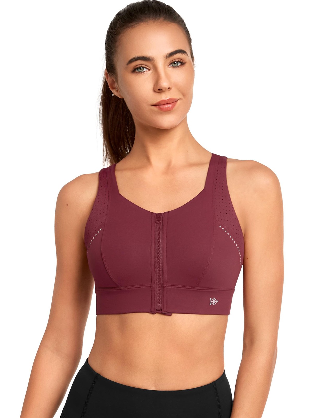 Adjustable Sports Bras for Women High Impact Front Zip Mesh Supportive Bras f...