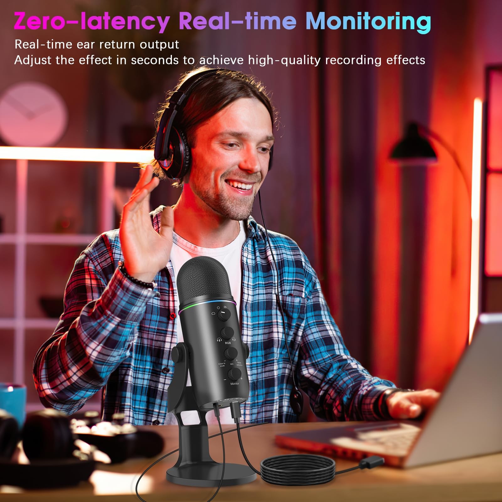 USB Multipurpose Condenser Microphone - Mic with 4 Recording Patterns - RGB L...
