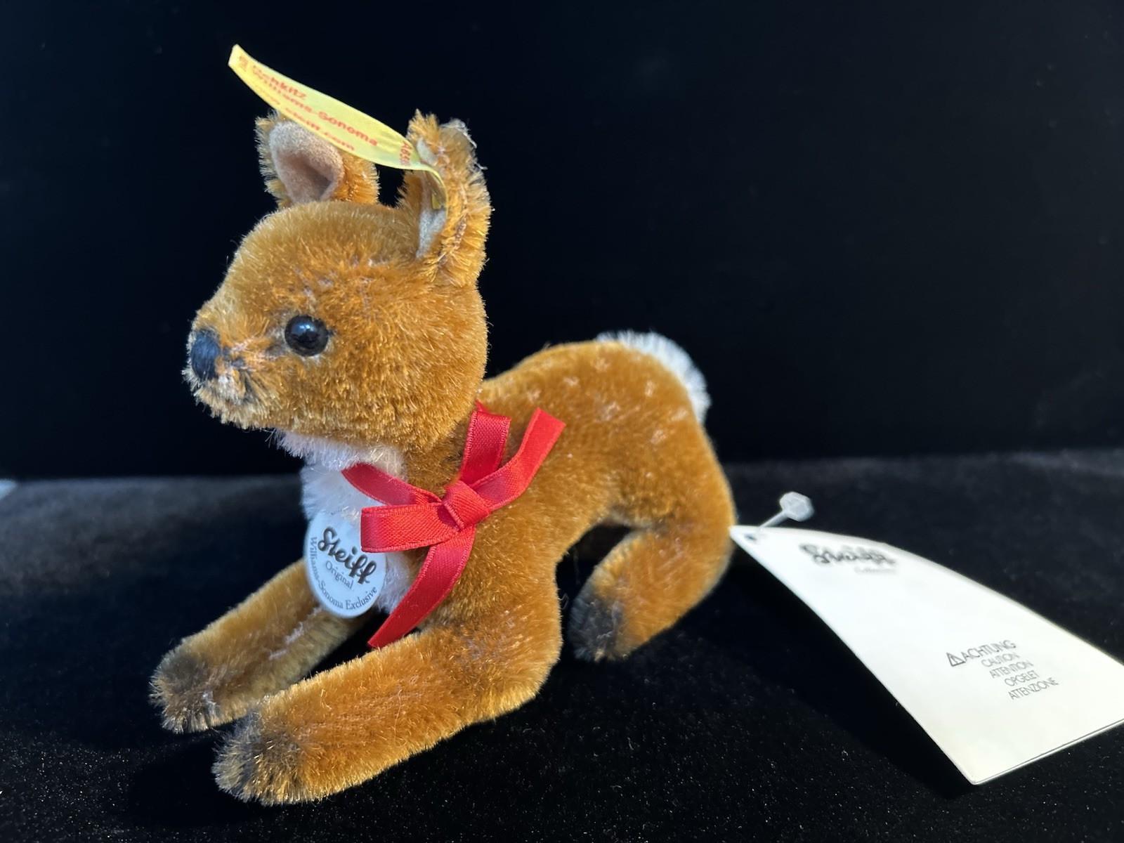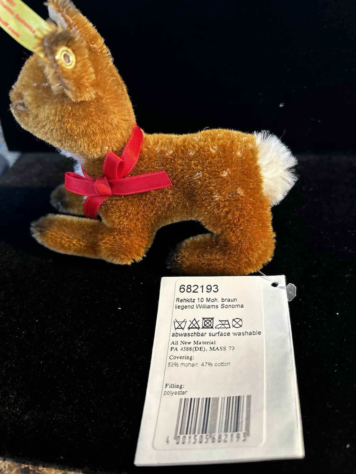 Steiff Mohair Sitting Fawn Deer Made in Germany W Tags Williams Sonoma