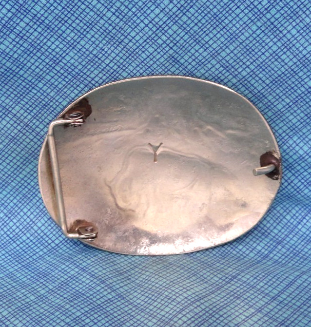 как выглядит Bison Belt Buckle Native Western Turquoise Inlay Handmade Signed Vtg 70s .GMP800 фото