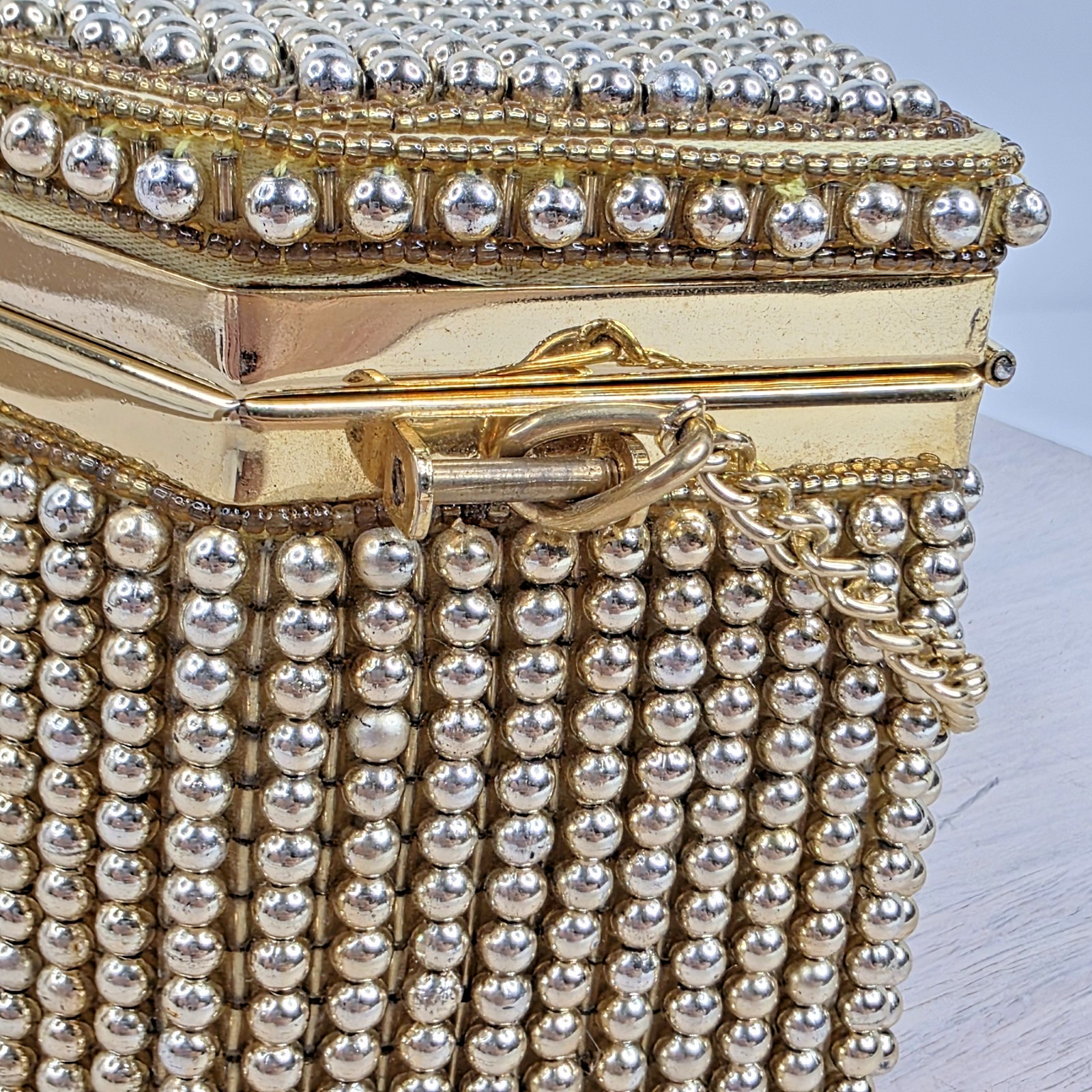 Vintage Walborg Gold Tone Beaded Box Evening Purse Lam