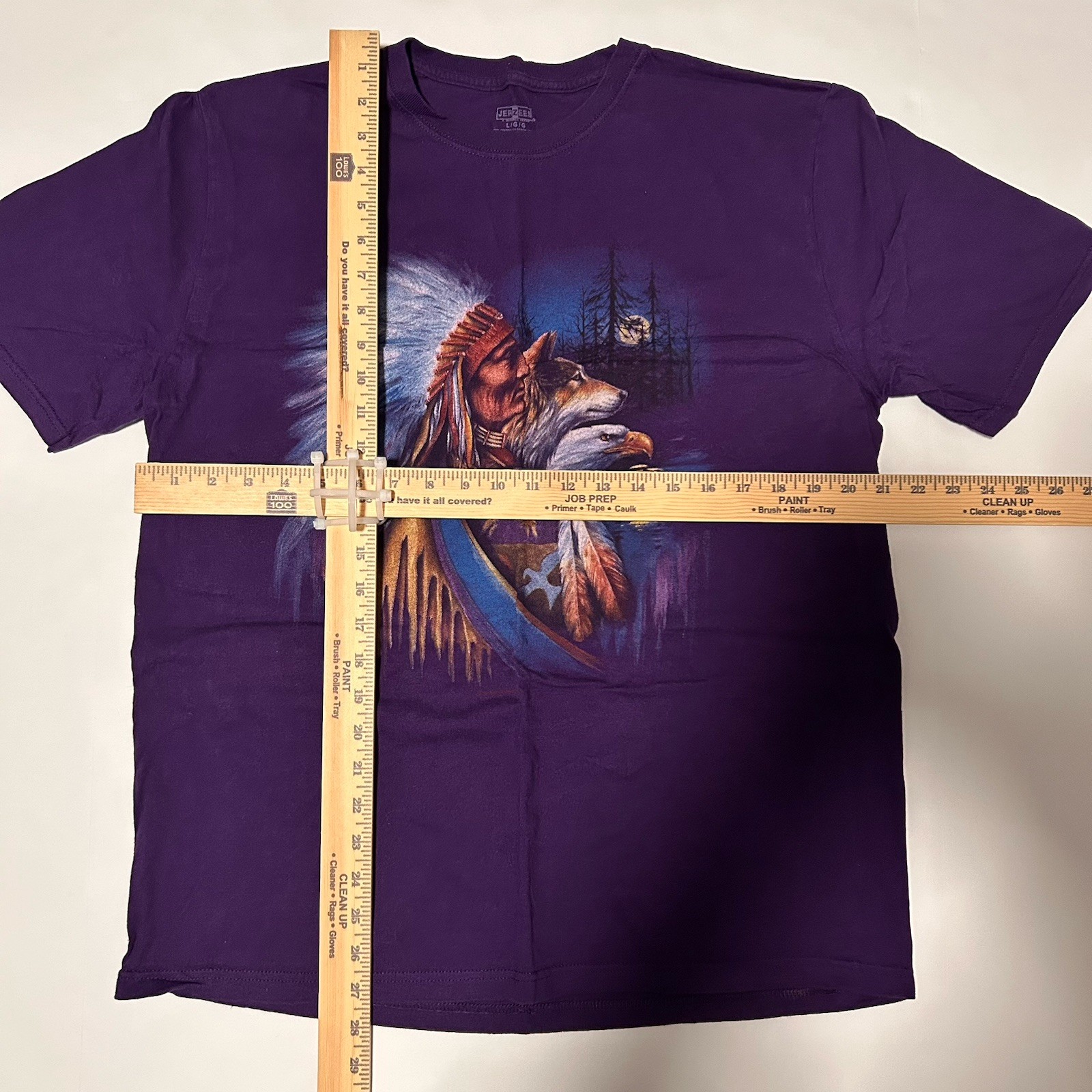 как выглядит Jerzees Native American Wolf Eagle T-Shirt Large Purple Graphic Tee фото