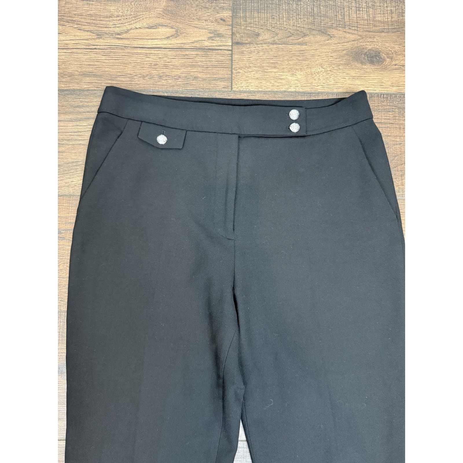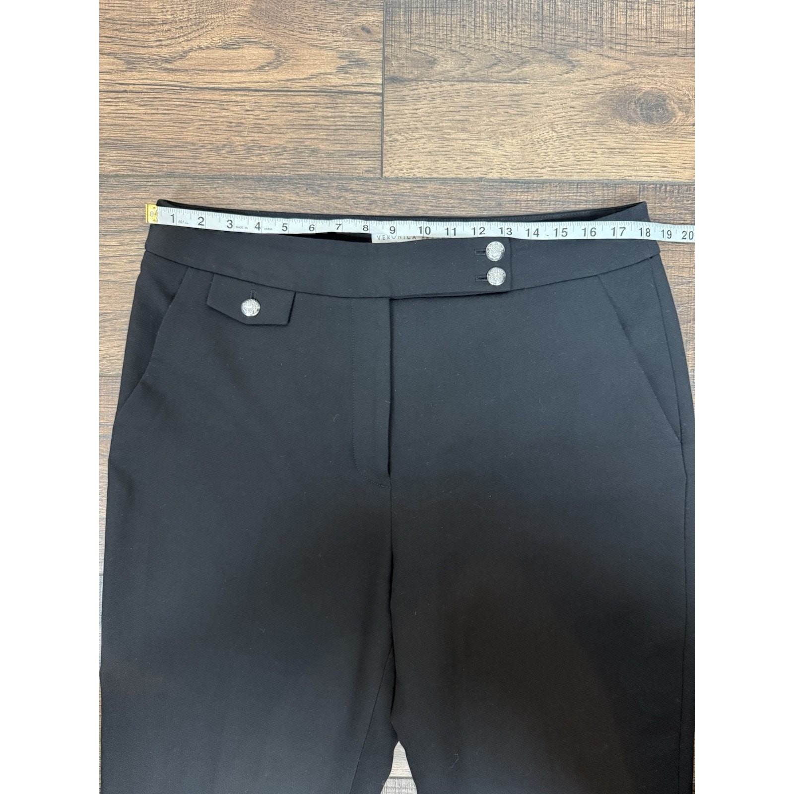 Veronica Beard Renzo Slim-Leg Crop Pants Black Silver Buttons Stretch Sz 16