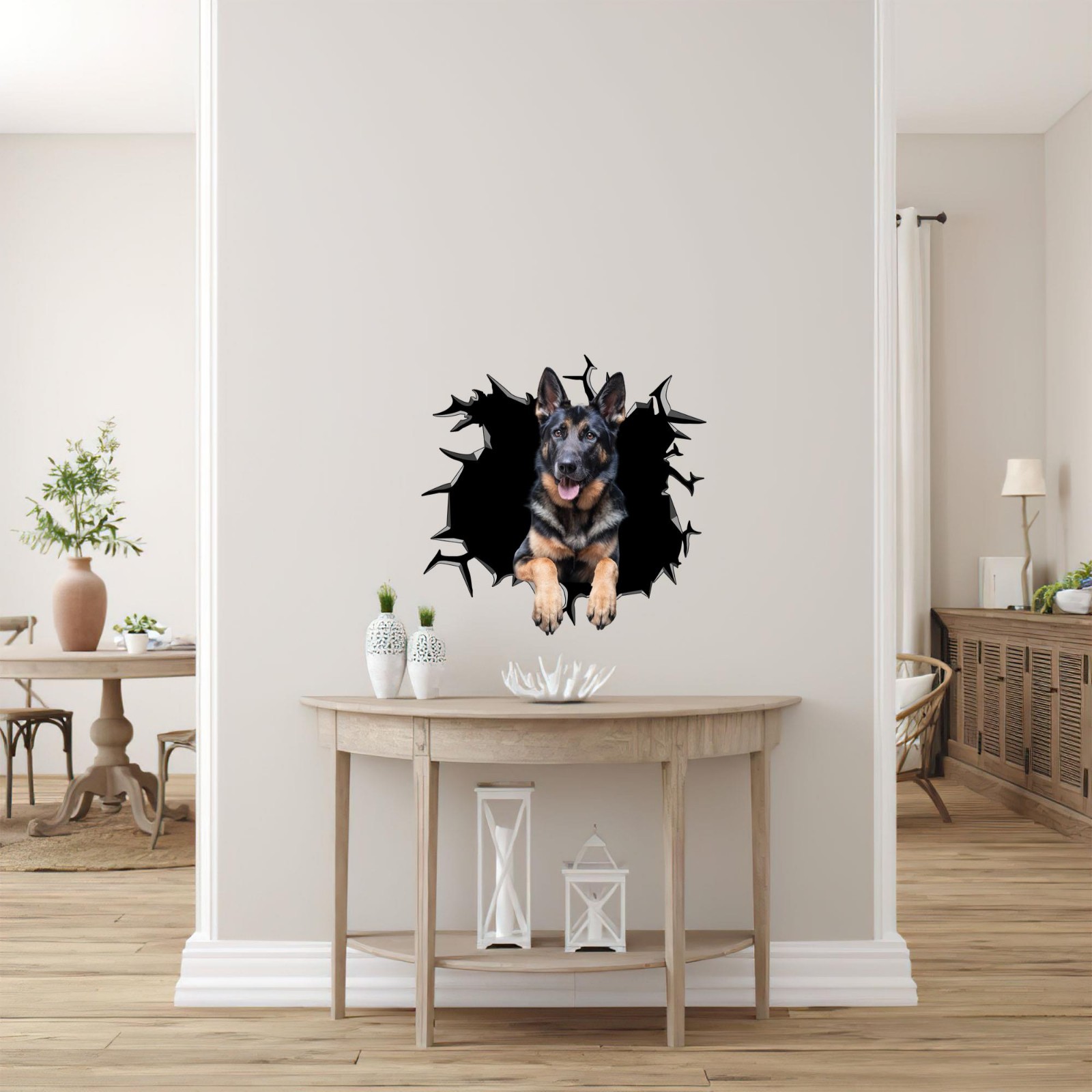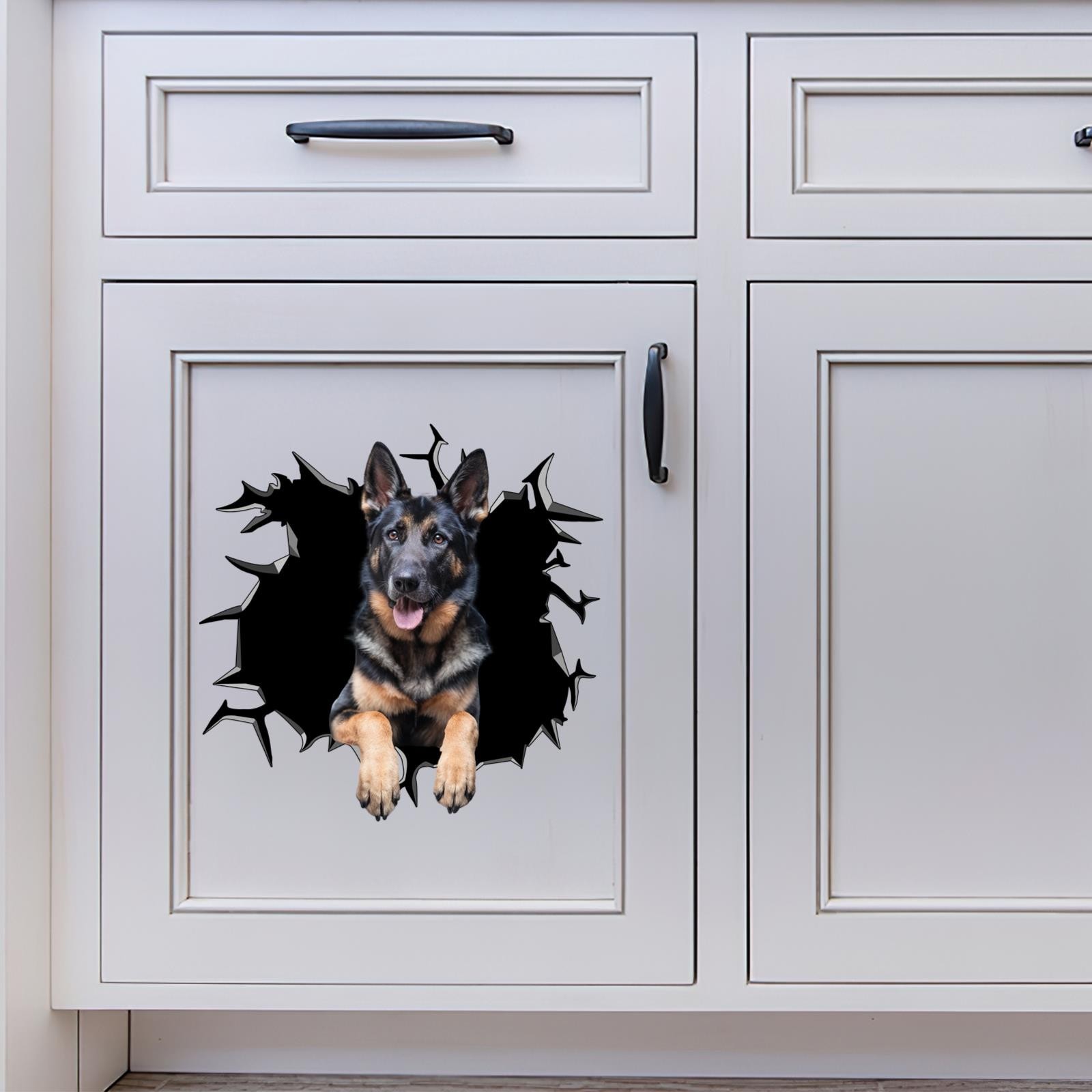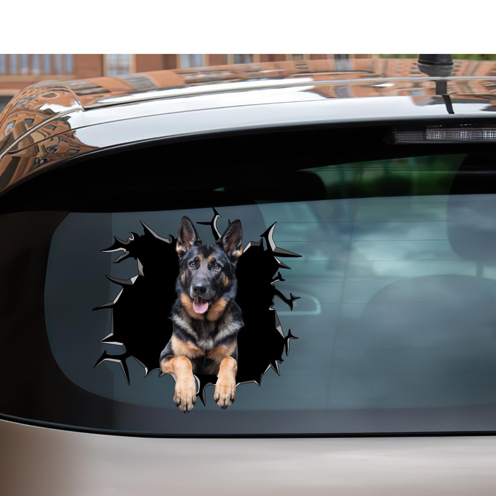 German Shepherd Car Window Decal Funny GSD Dog Peeking Cracked Glass Sticker