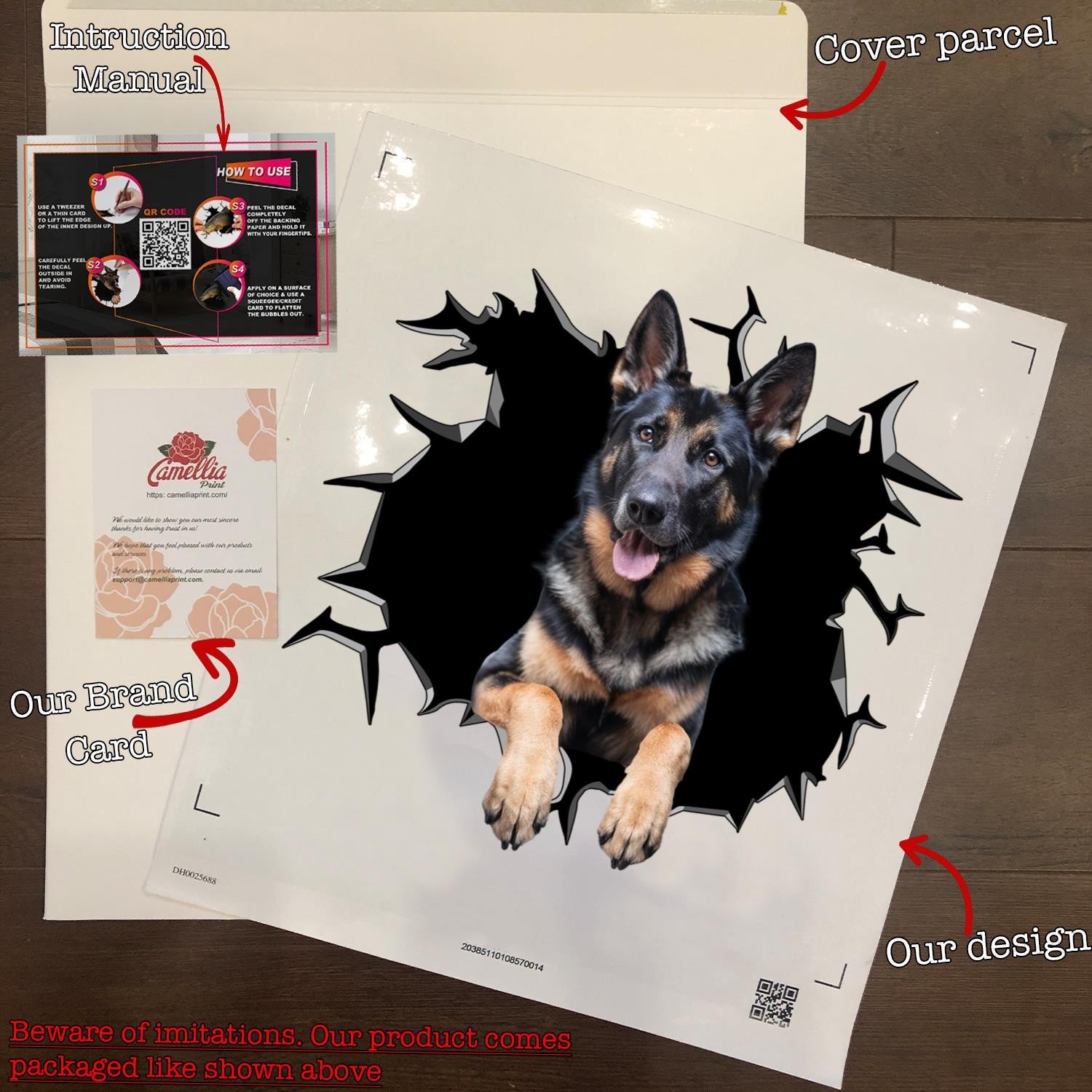 как выглядит German Shepherd Car Window Decal Funny GSD Dog Peeking Cracked Glass Sticker фото
