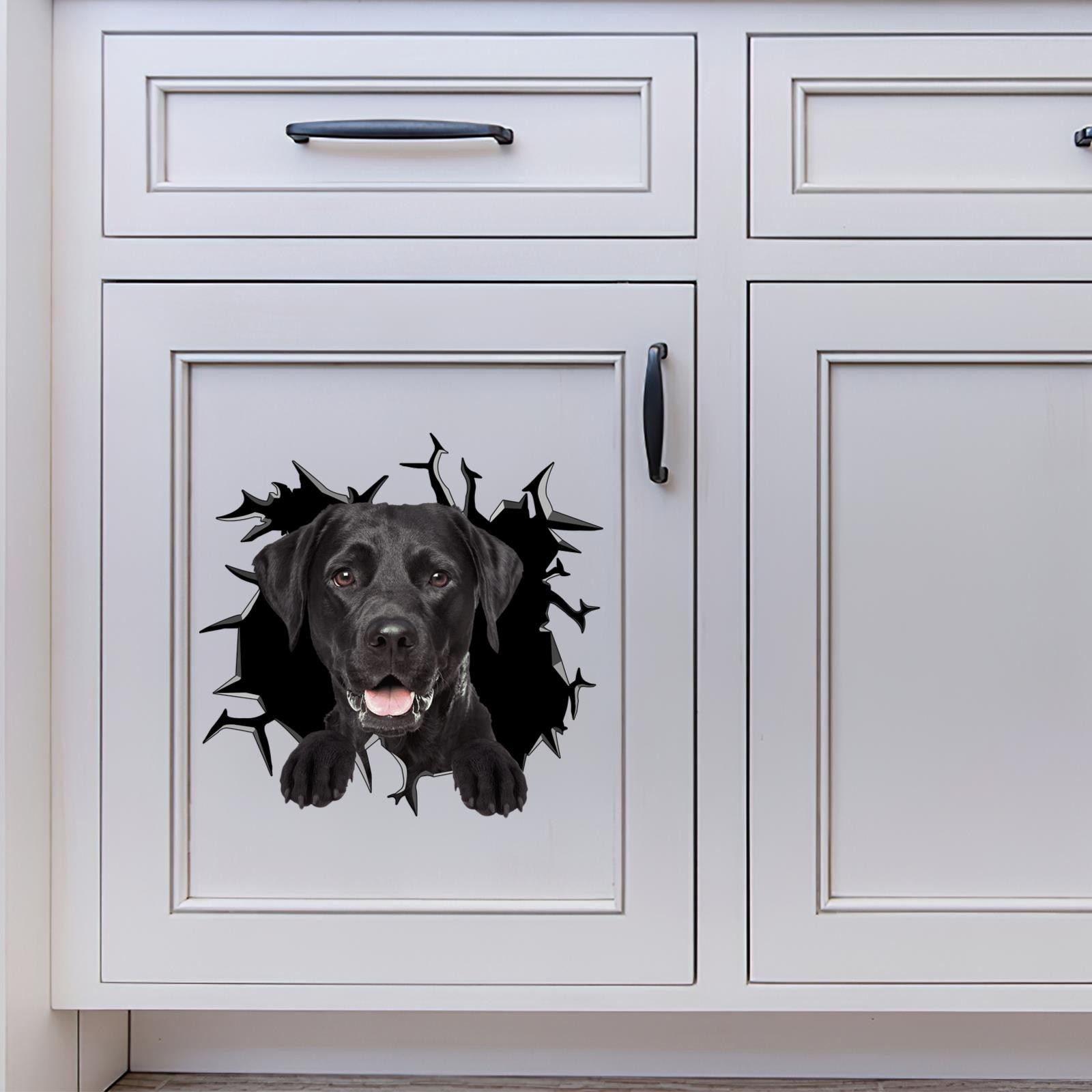 Black Labrador Car Window Decal Funny Lab Dog Peeking Cracked Glass Sticker