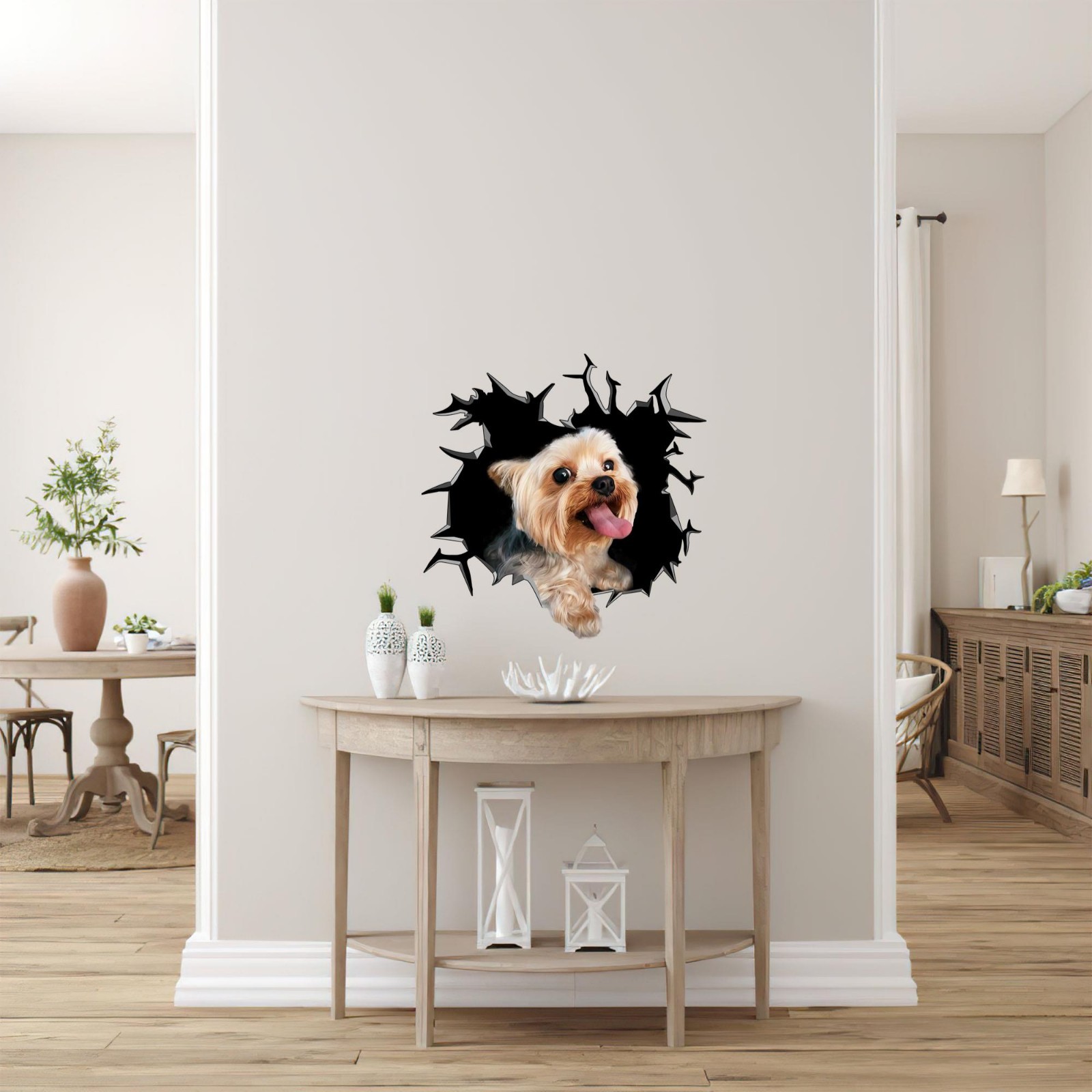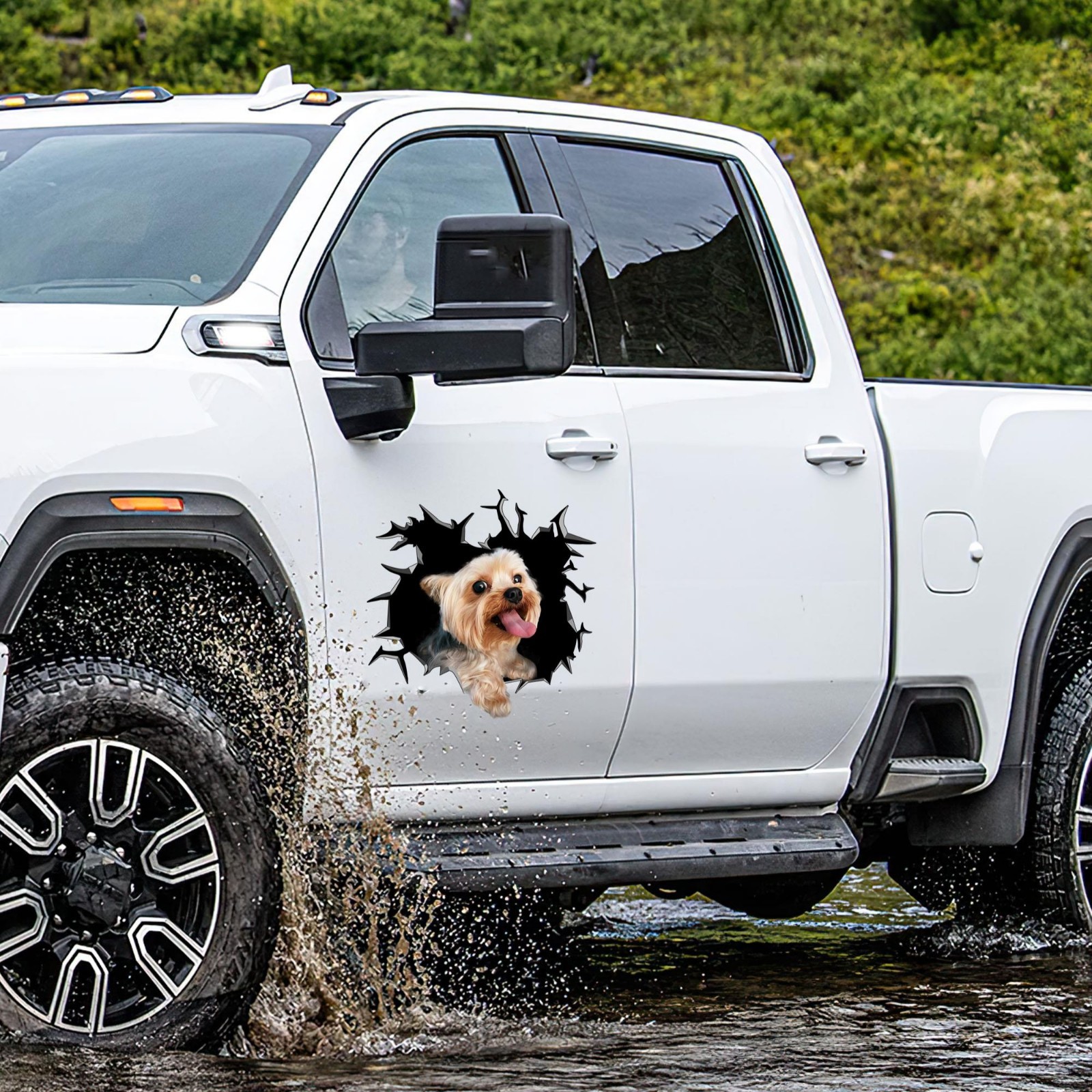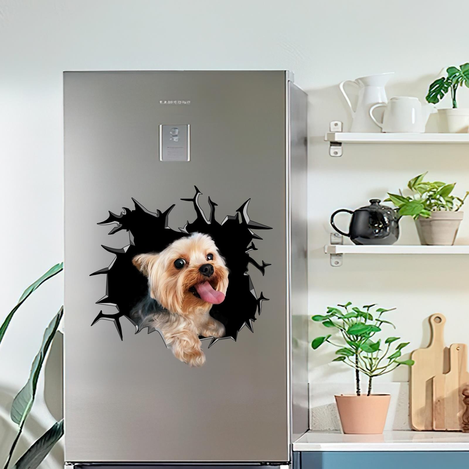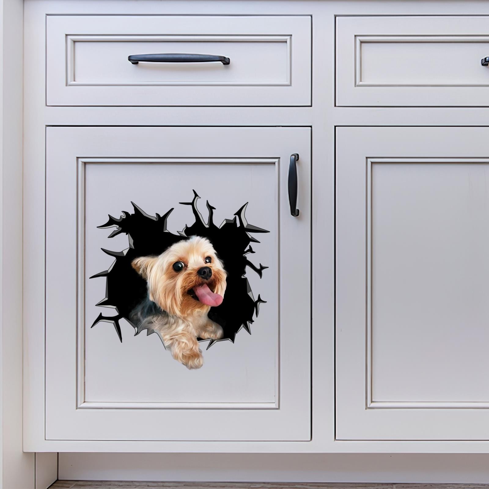 Yorkshire Terrier Car Window Decal Funny Yorkie Dog Peeking Cracked Sticker