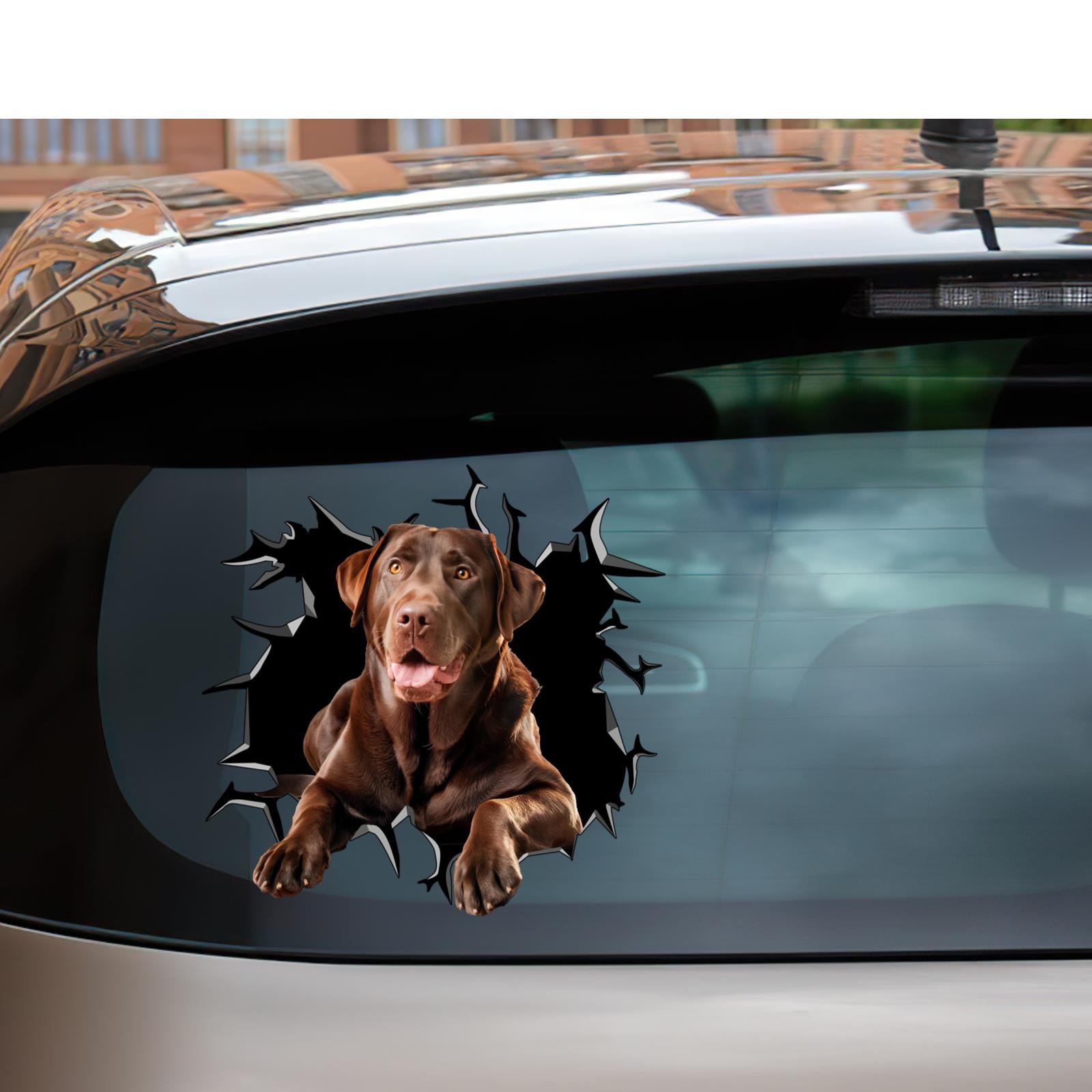 Chocolate Labrador Car Window Decal Funny Lab Cracked Glass Sticker