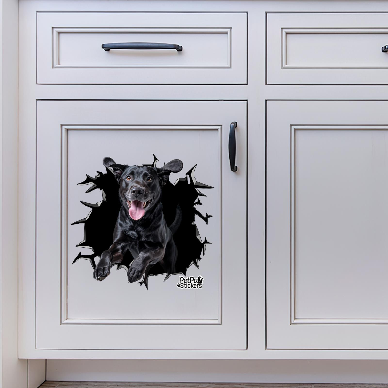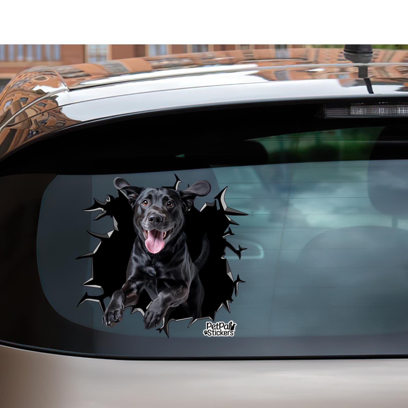 Black Labrador Car Window Decal Funny Dog Jumping Cracked Glass 3D Sticker