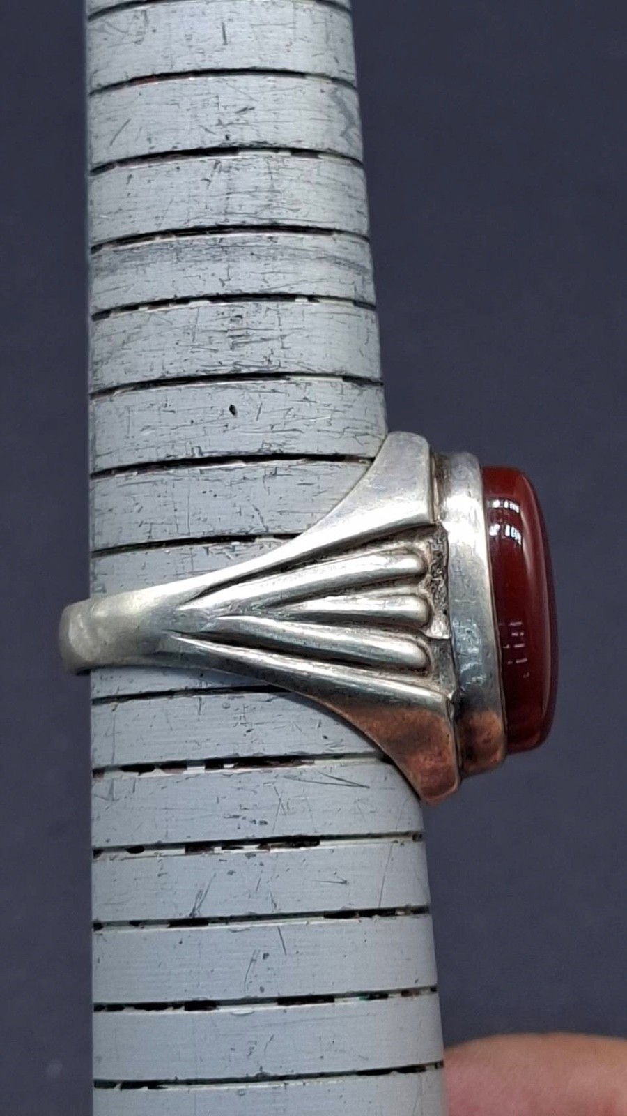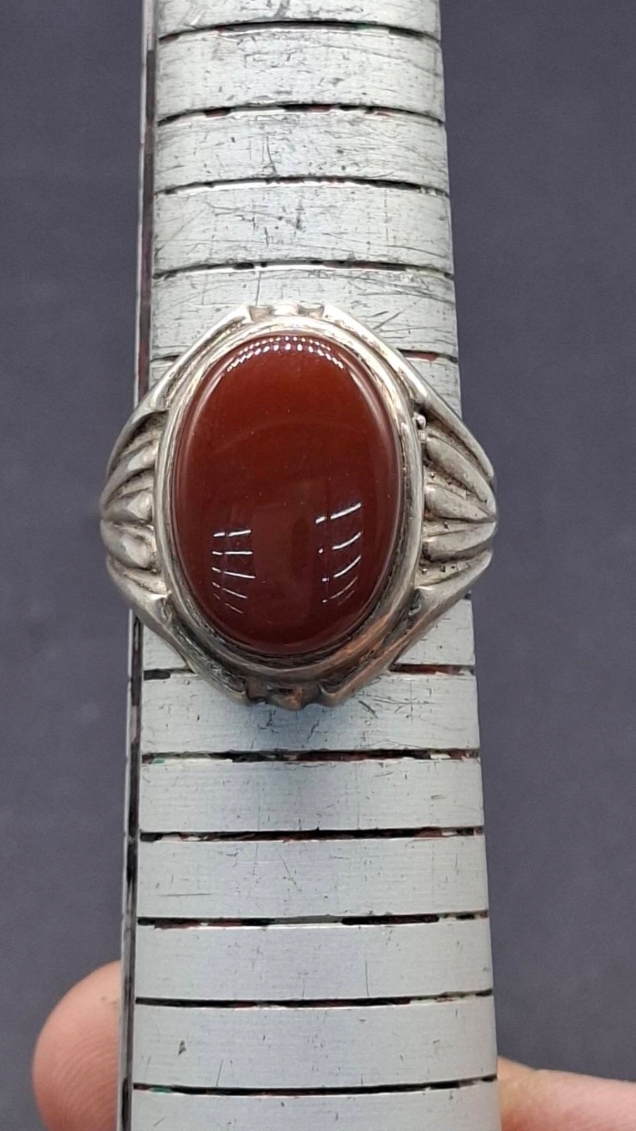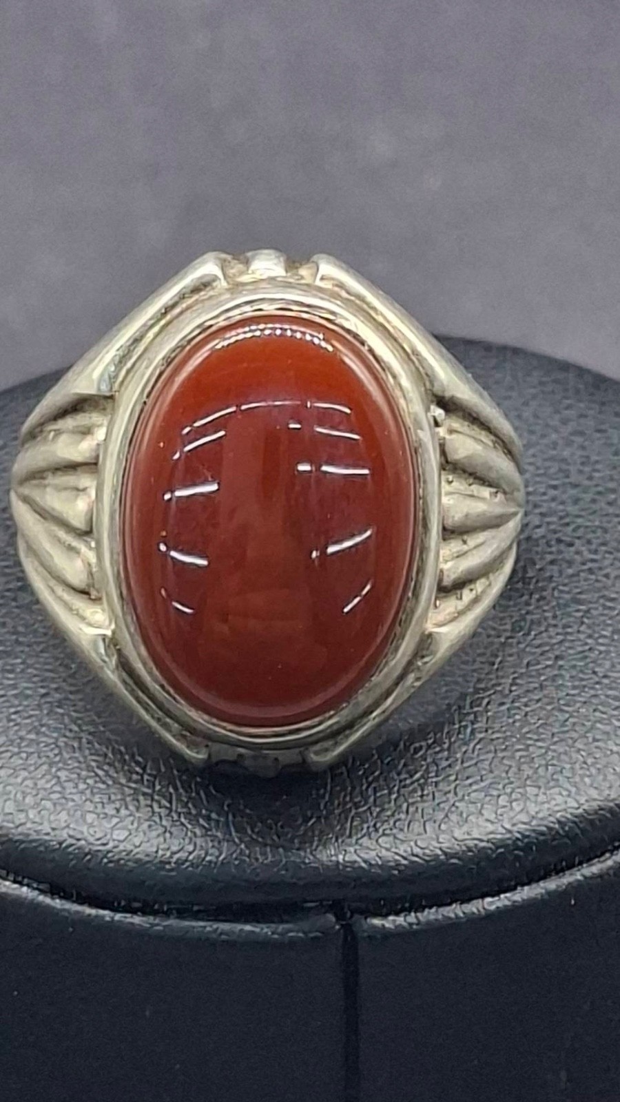 как выглядит Yemeni Aqeeq Ring For Men, Carnelian Ring With Sterling Silver 925, Natural Agat фото