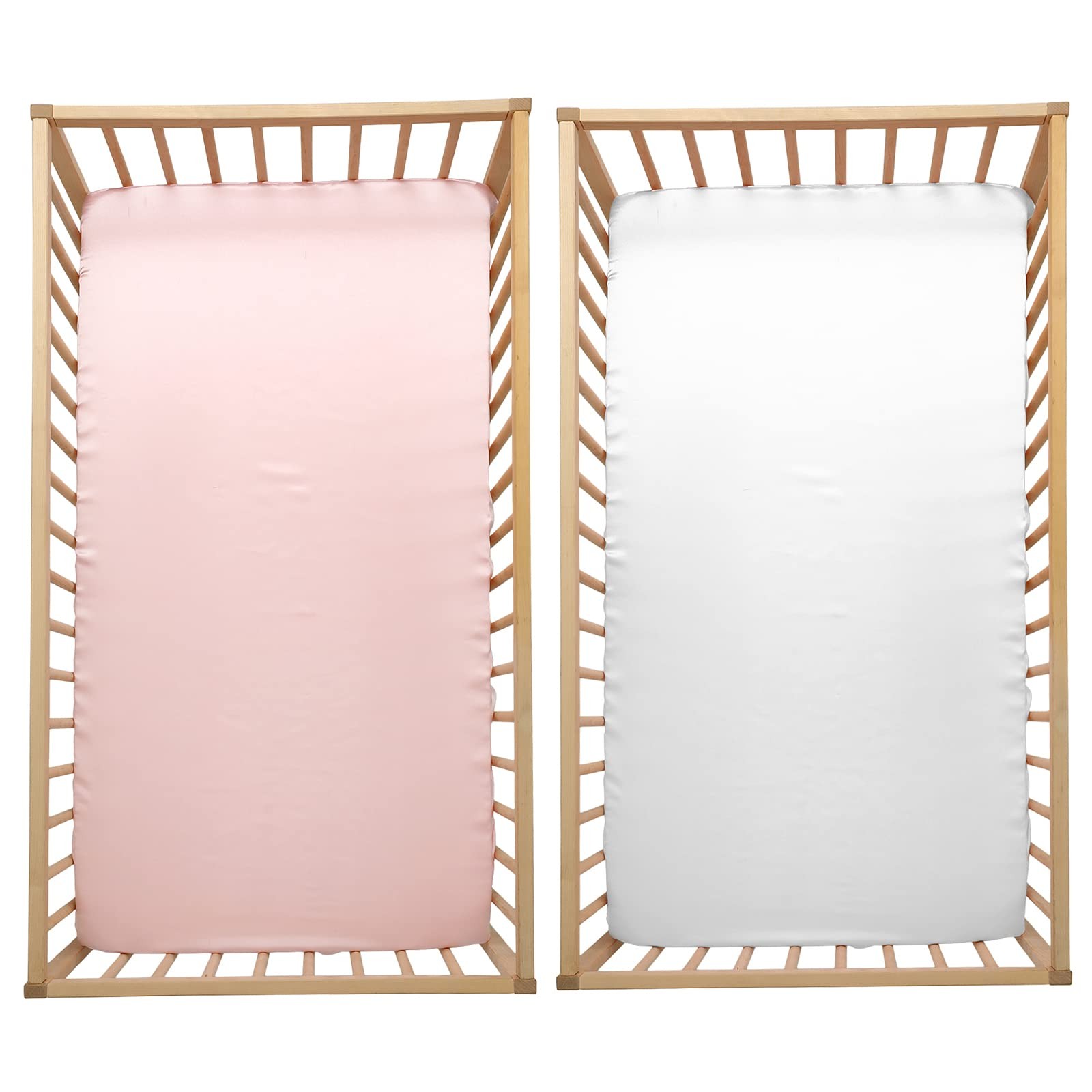 2 Pcs Satin Crib Sheets for Girls, Silky Soft Crib Fitted Sheets for Standard...
