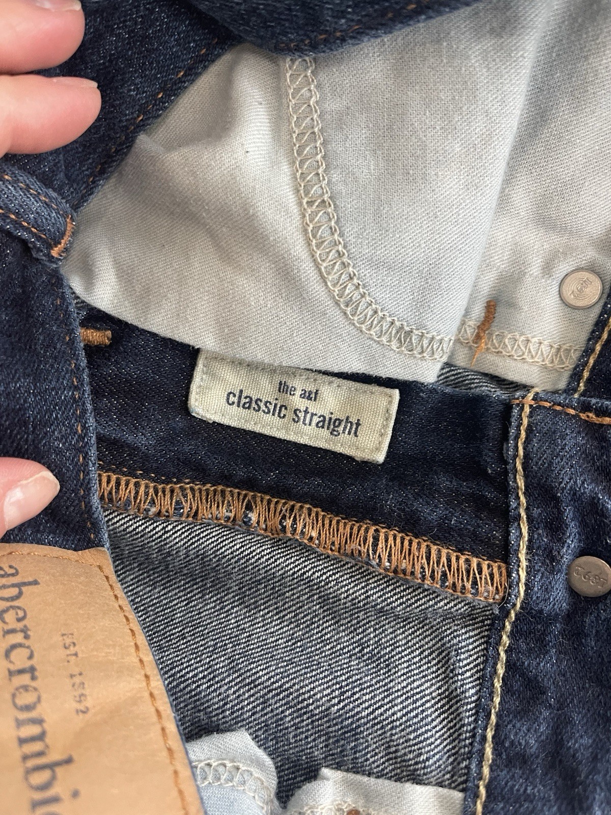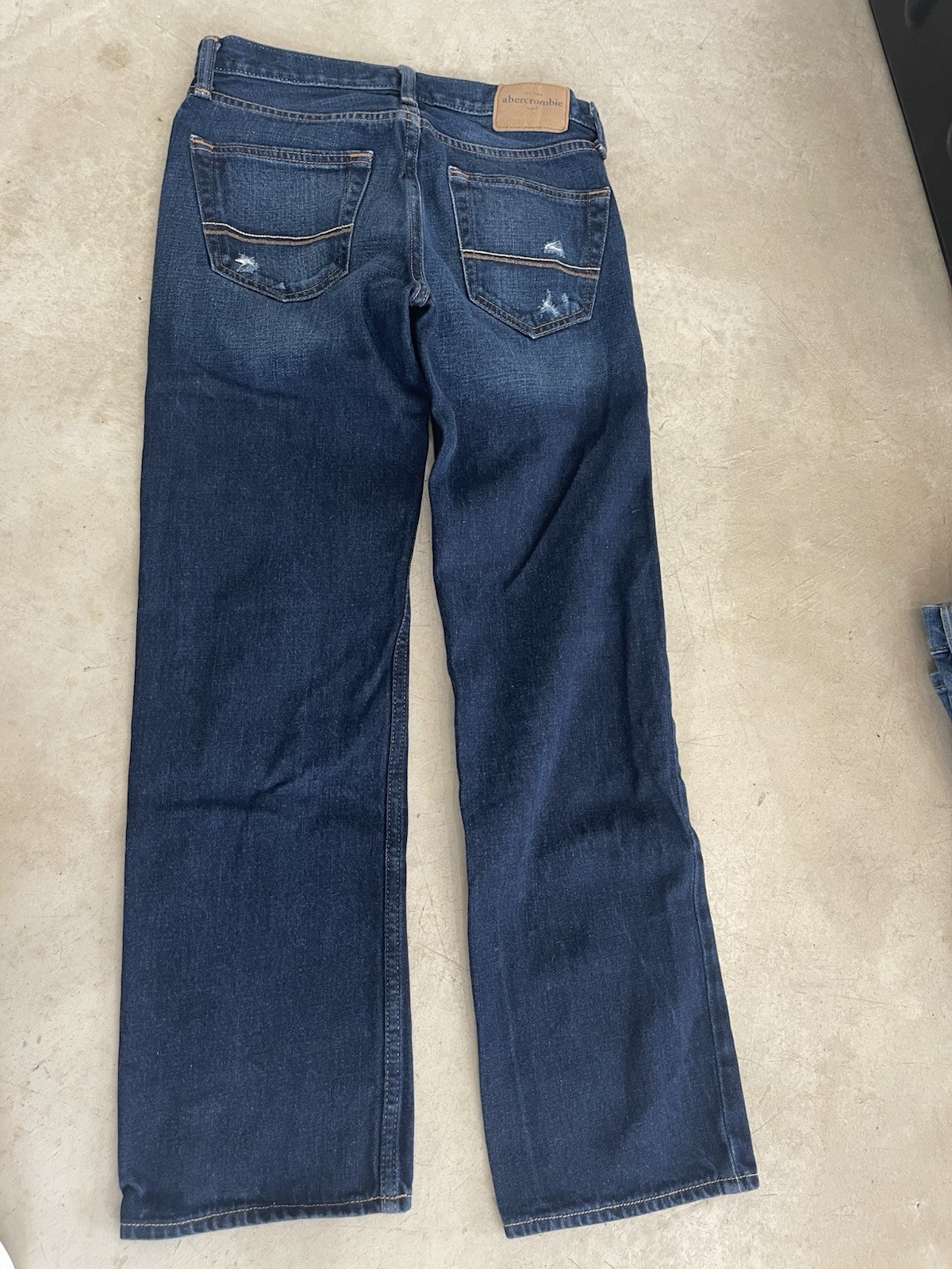 как выглядит Abercrombie Boys Youth Classic Straight Jeans Size 16 Dark Wash Distressed фото