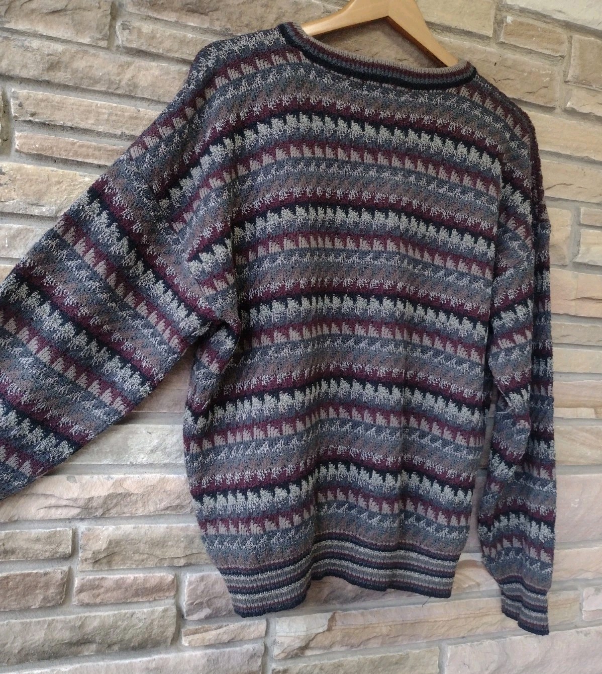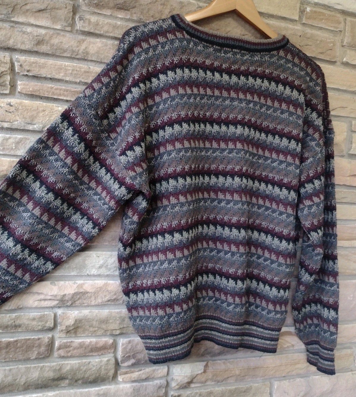как выглядит Vintage 90s Jantzen Geometric Knit Sweater L Korea Acrylic Blend Pullover фото