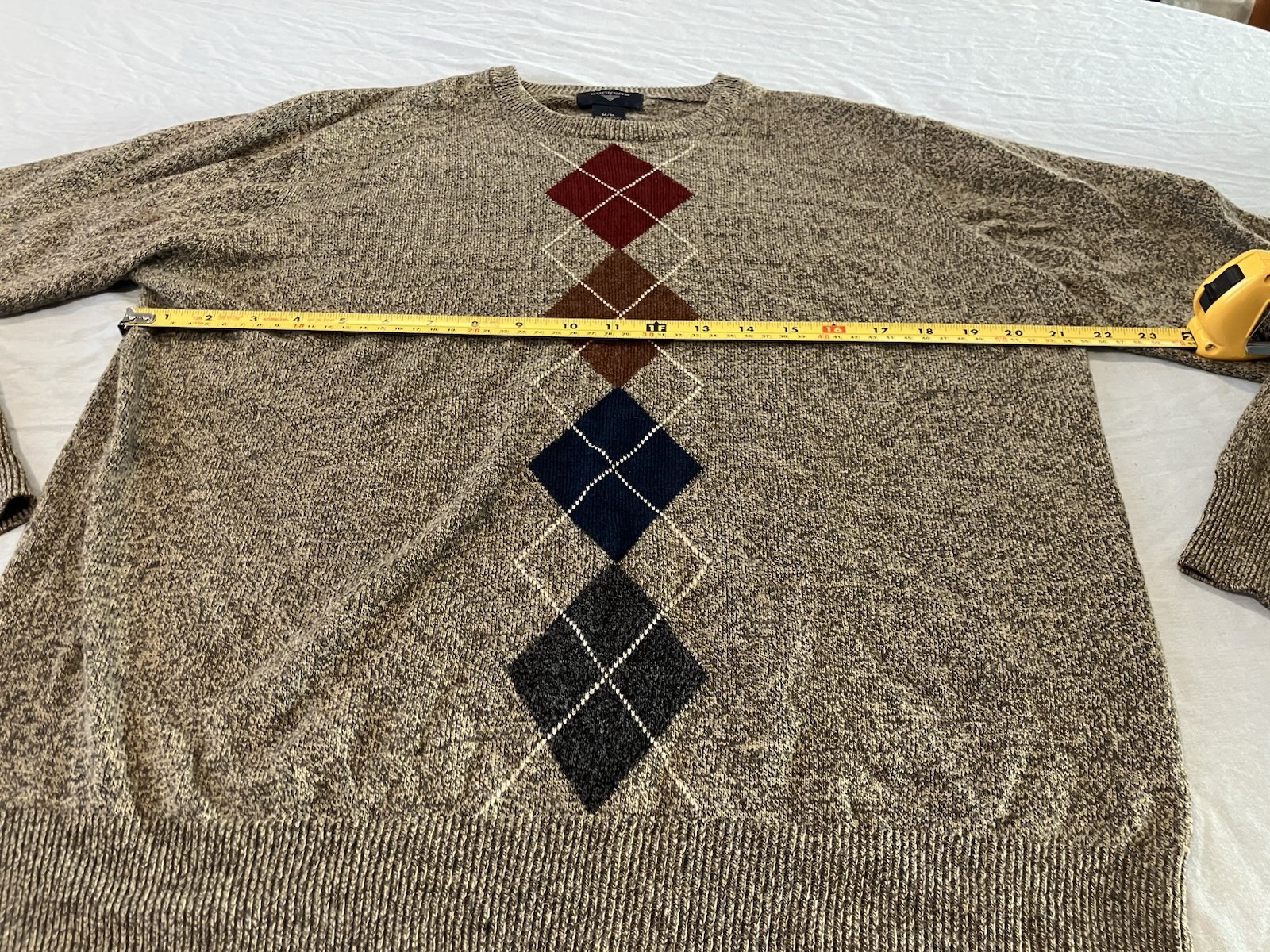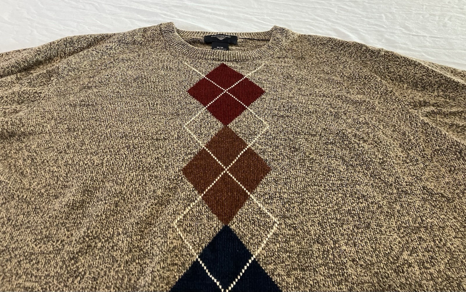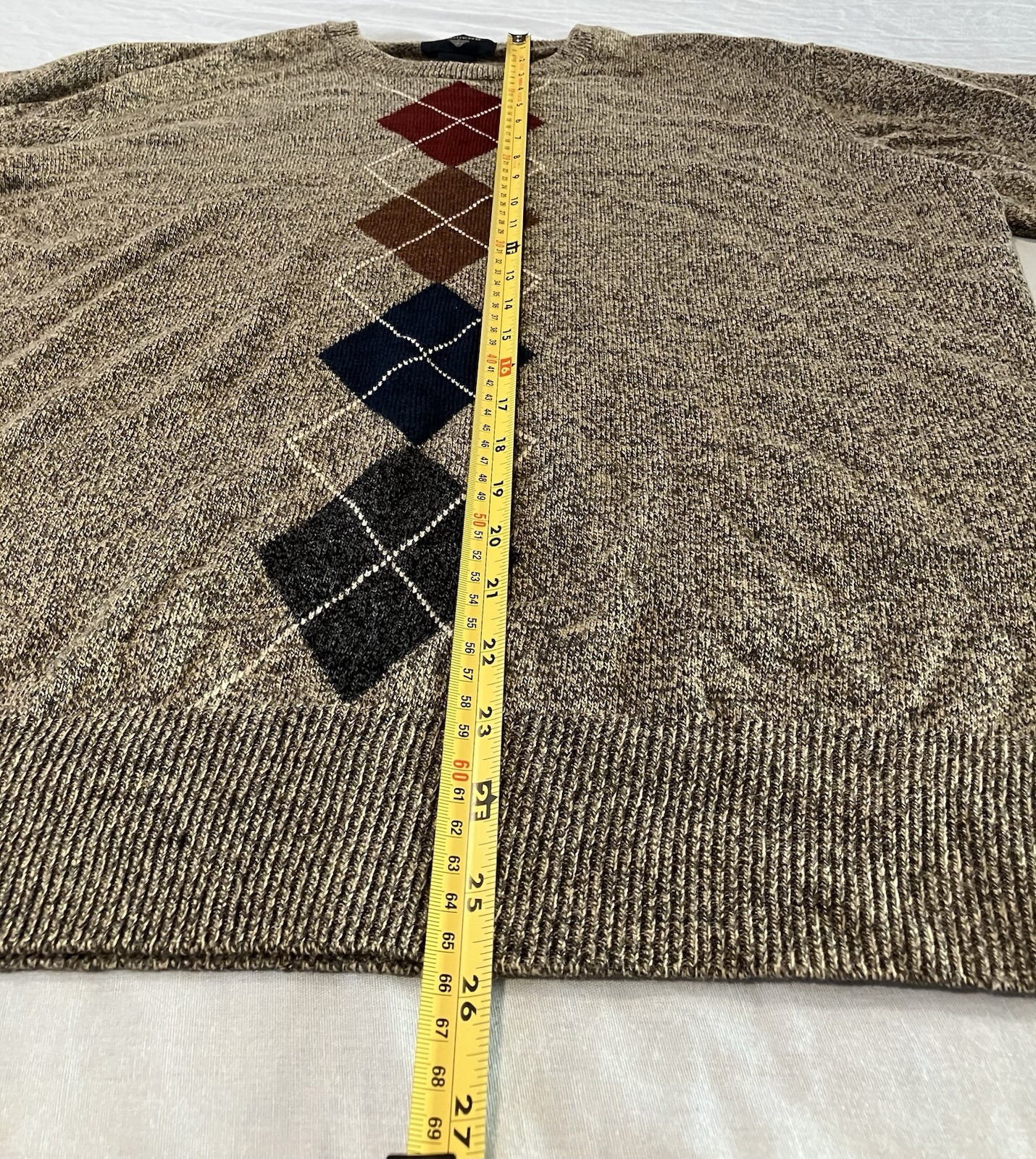 Dockers Mens Long Sleeve Sweater Size M Brown Argyle Diamond Crewneck