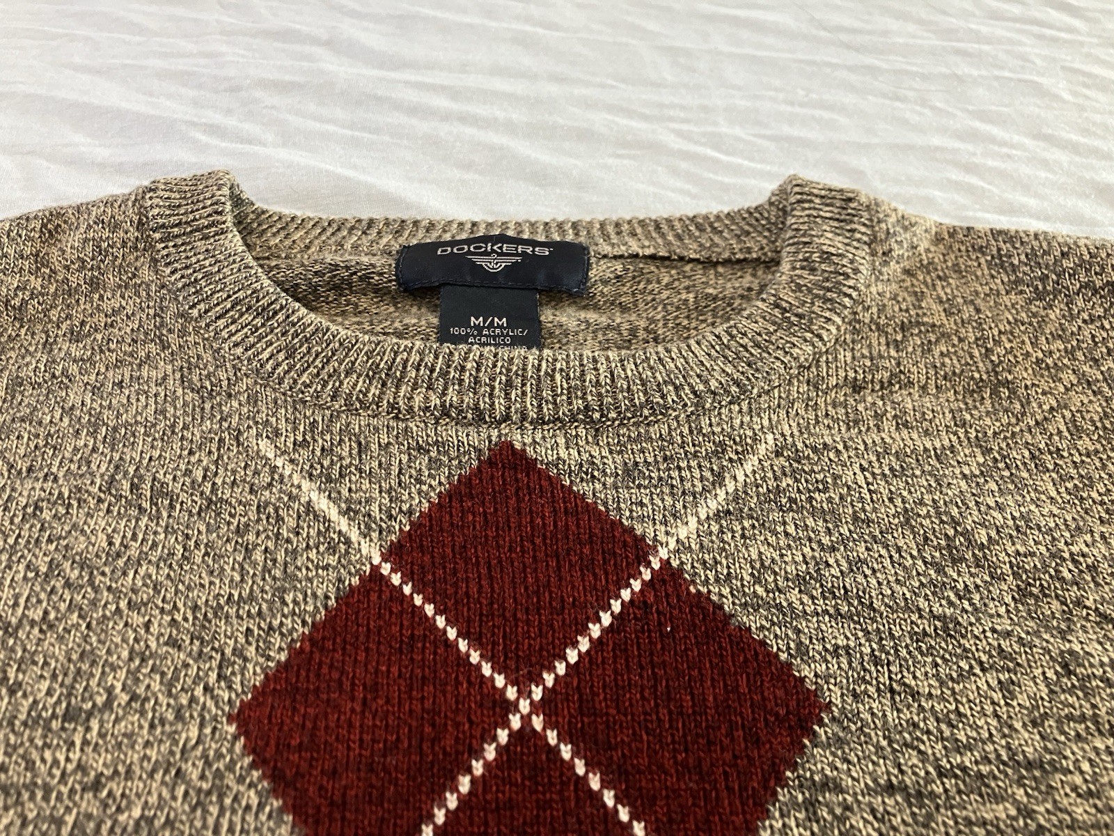 как выглядит Dockers Mens Long Sleeve Sweater Size M Brown Argyle Diamond Crewneck фото