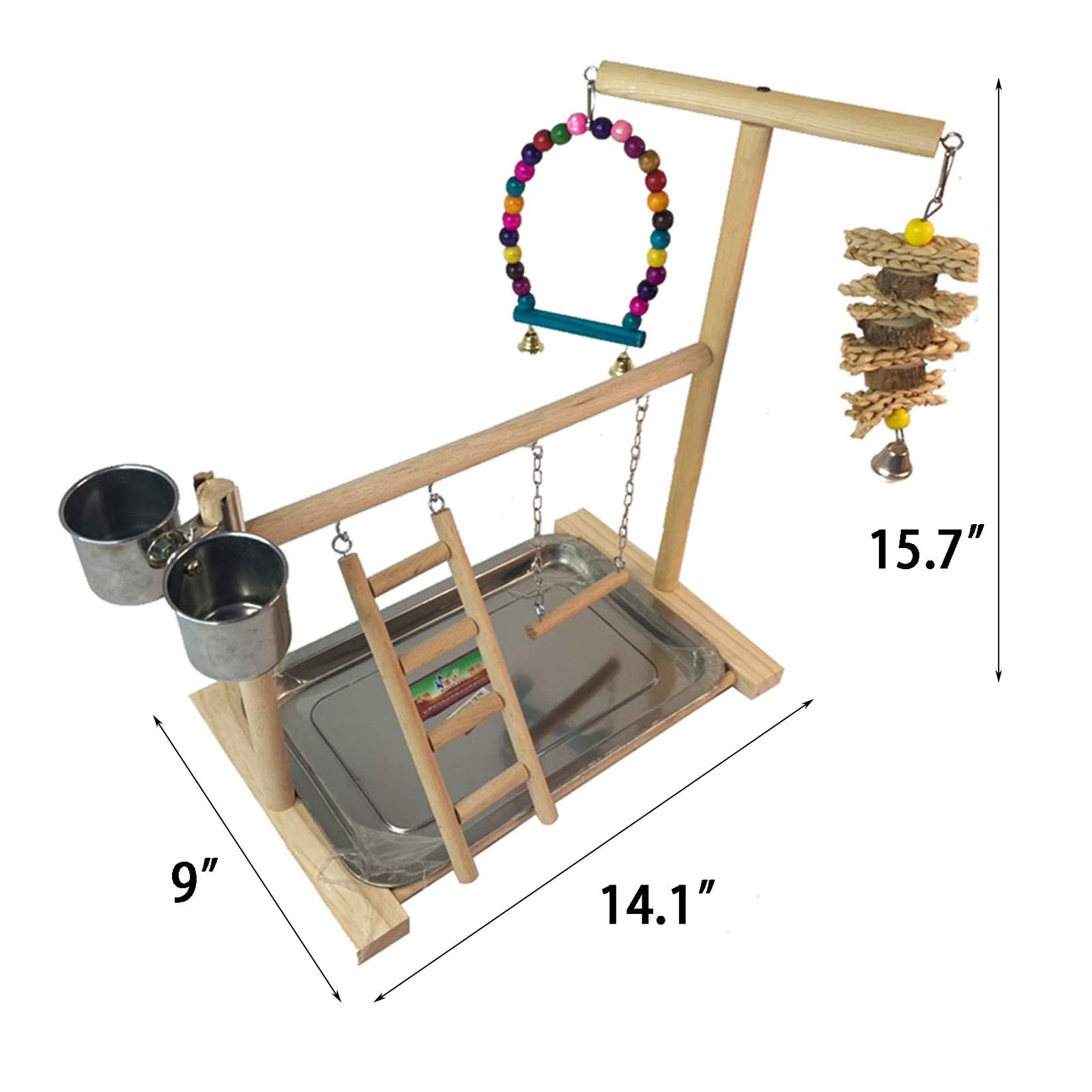 Parrot Playground Bird Play Stand Play Gym with Feeder Cups,Swings, Ladder an...
