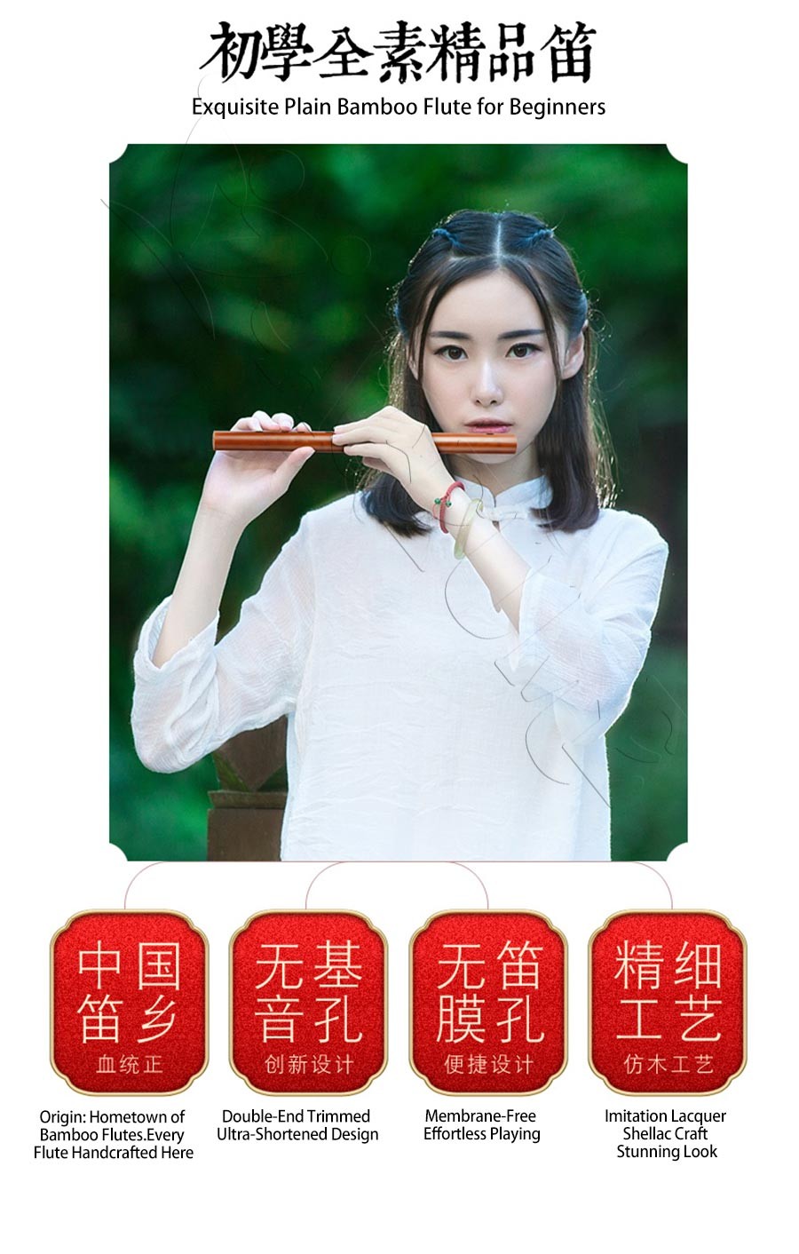 Mini Transverse Bamboo Flute No Membrane Hole Portable Ancient-Style Instrument