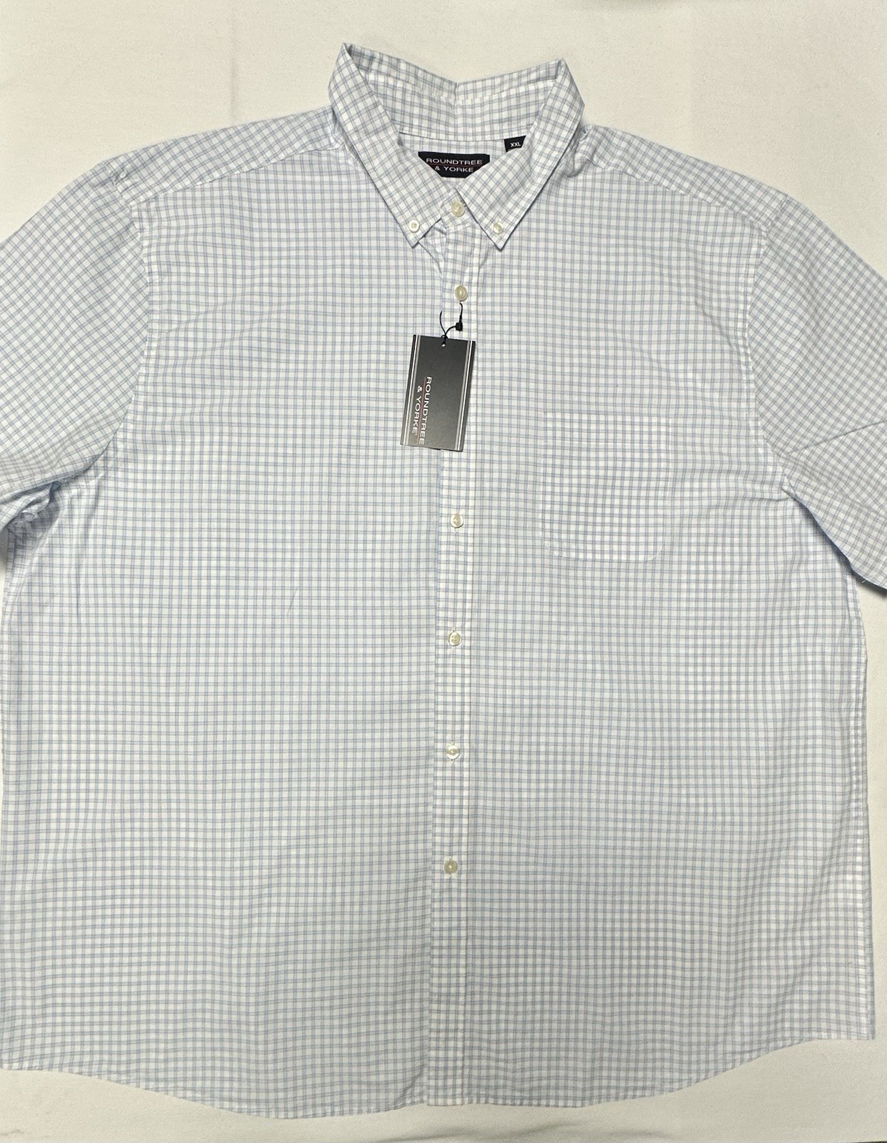 Roundtree Yorke Men Shirt Top XXL /2XL Button Cotton Short Sleeve White Blue