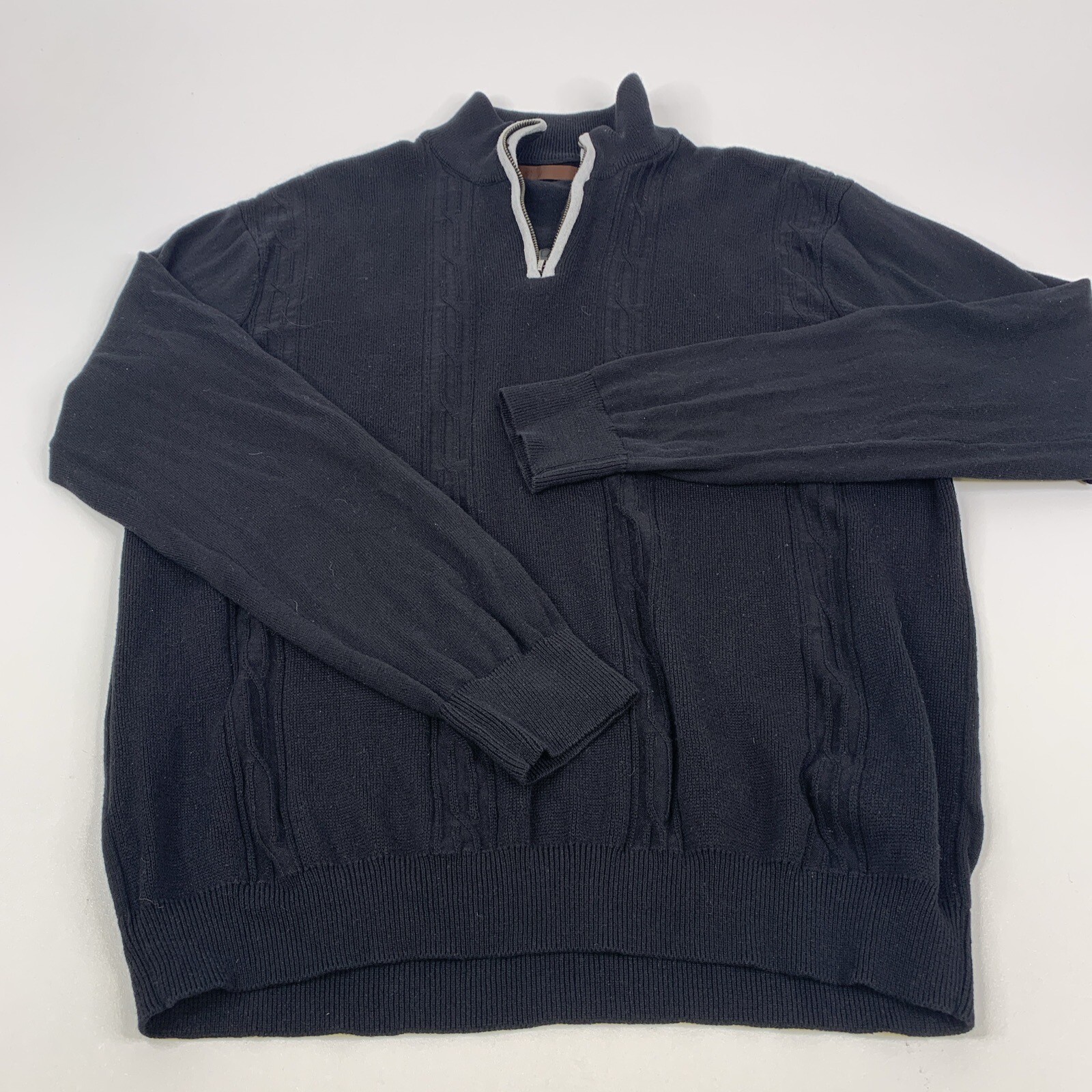 как выглядит Perry Ellis Quarter Zip Pullover Sweater Black Gray Trim Mens L фото