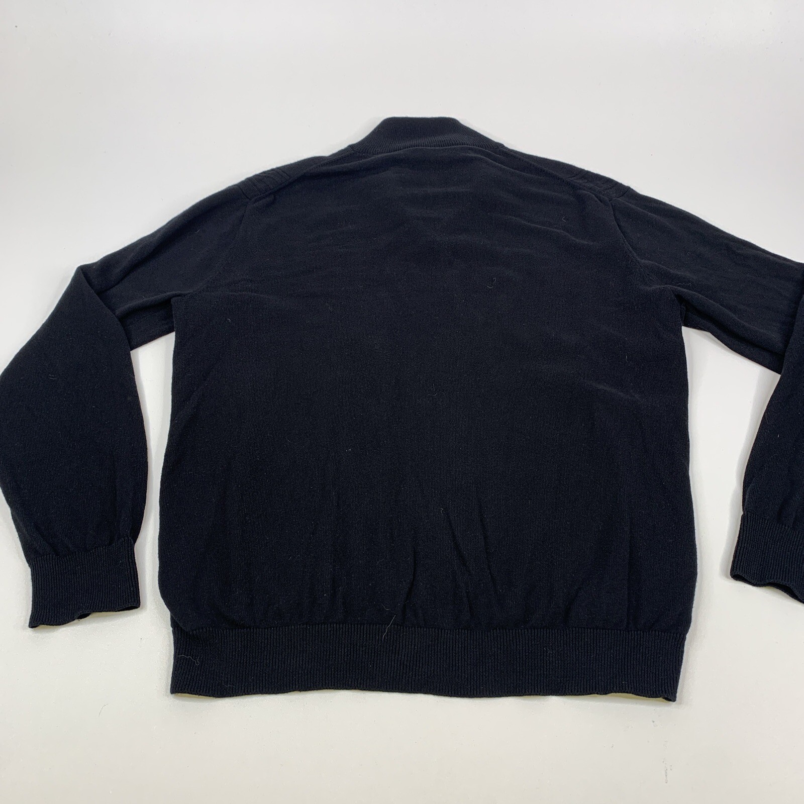 Perry Ellis Quarter Zip Pullover Sweater Black Gray Trim Mens L