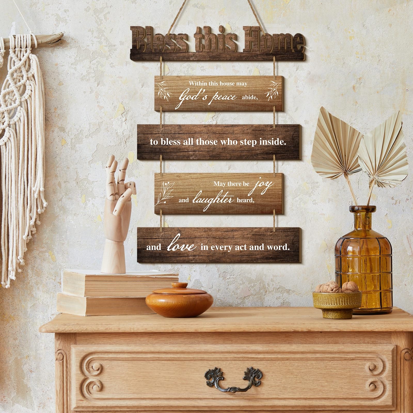 Bless This Home Wall Decor Religious House Warming Gift Farmhouse Wooden God ...